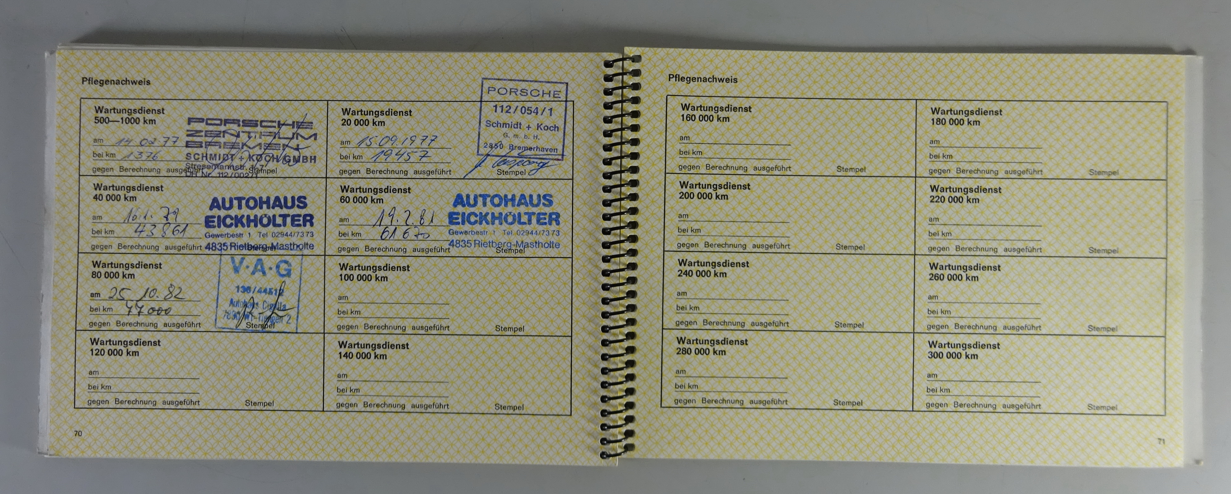 Zustand: gut, mit Gebrauchsspuren, ersten Seiten leicht wellig, Pflegepass mit Einträgen bis 1982 mit 77000km