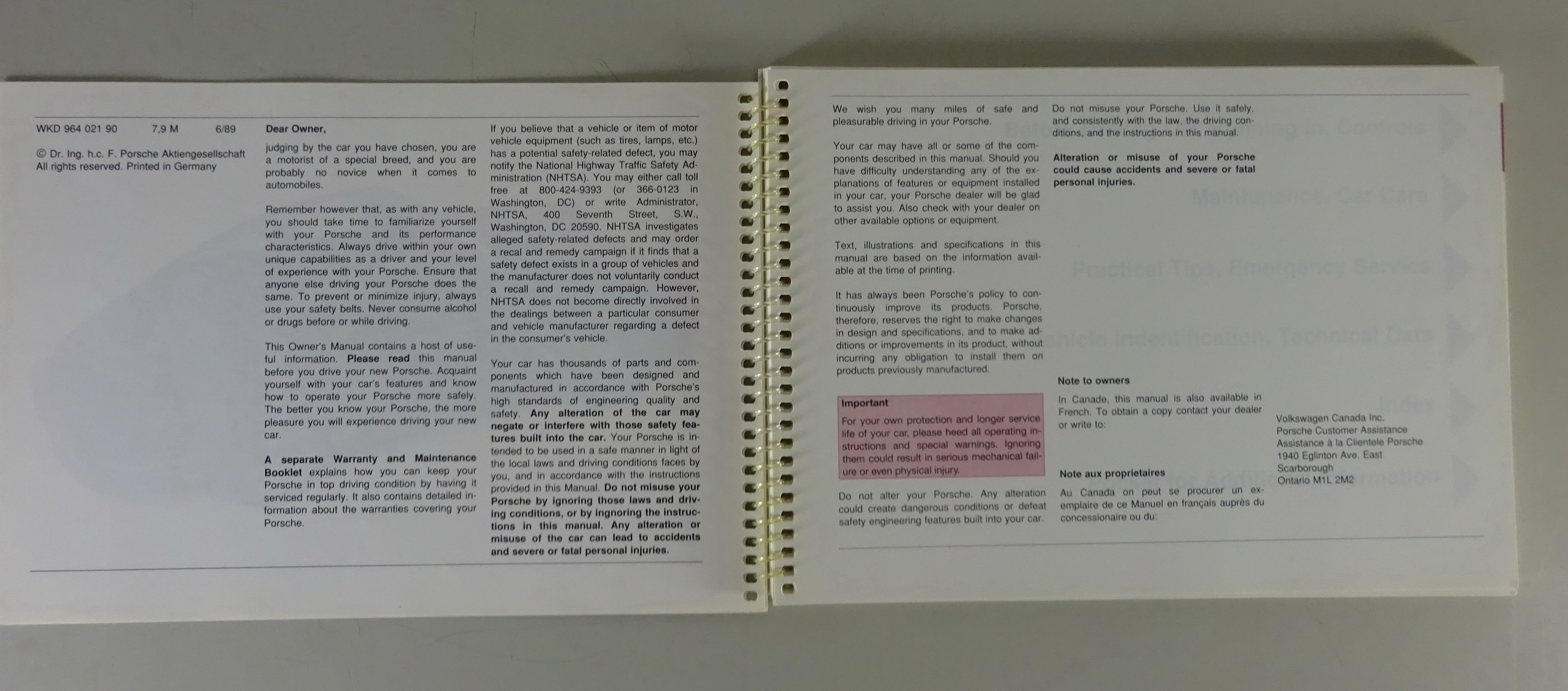 Betriebsanleitung / Owner´s Manual Porsche 911 Carrera 2 / 4 Typ 964 Mj. 1990