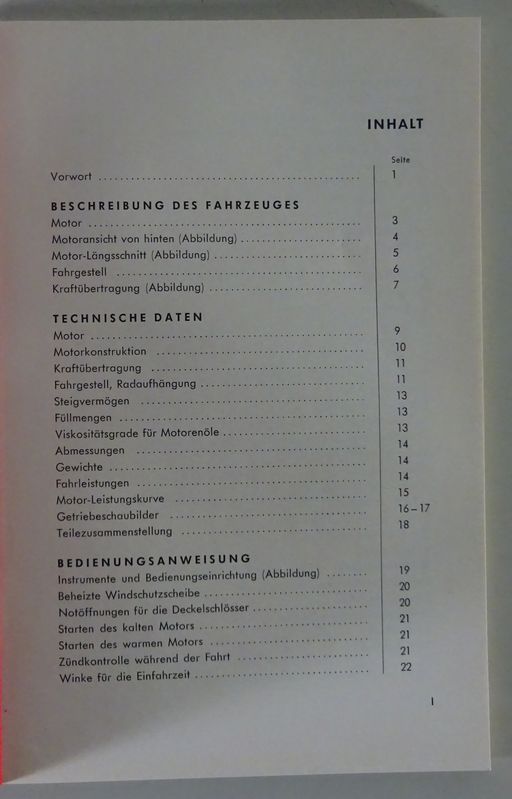 Inhalt: Beschreibung des Fahrzeuges, Technische Daten, Bedienungsanweisung