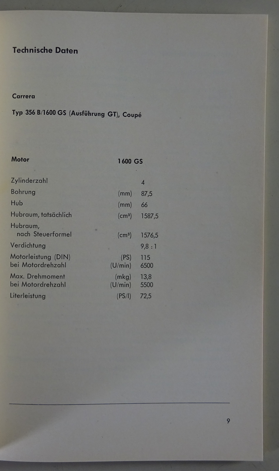 Anhang zur Betriebsanleitung Porsche 356 B Carrera 1600 GS / GT | Stand 04/1960