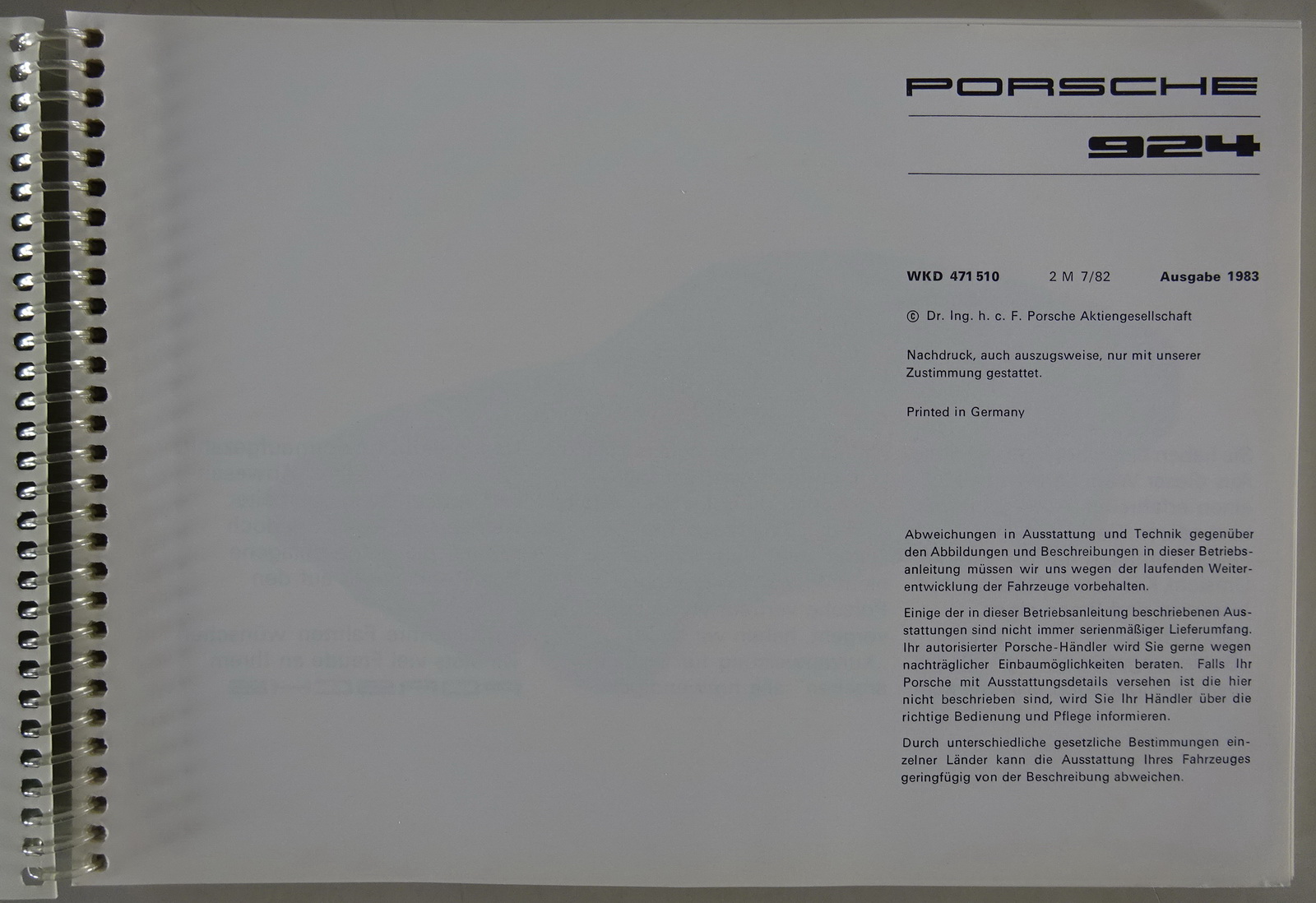 Betriebsanleitung / Handbuch Porsche 924 Modelljahr 1983 Stand 07/1982