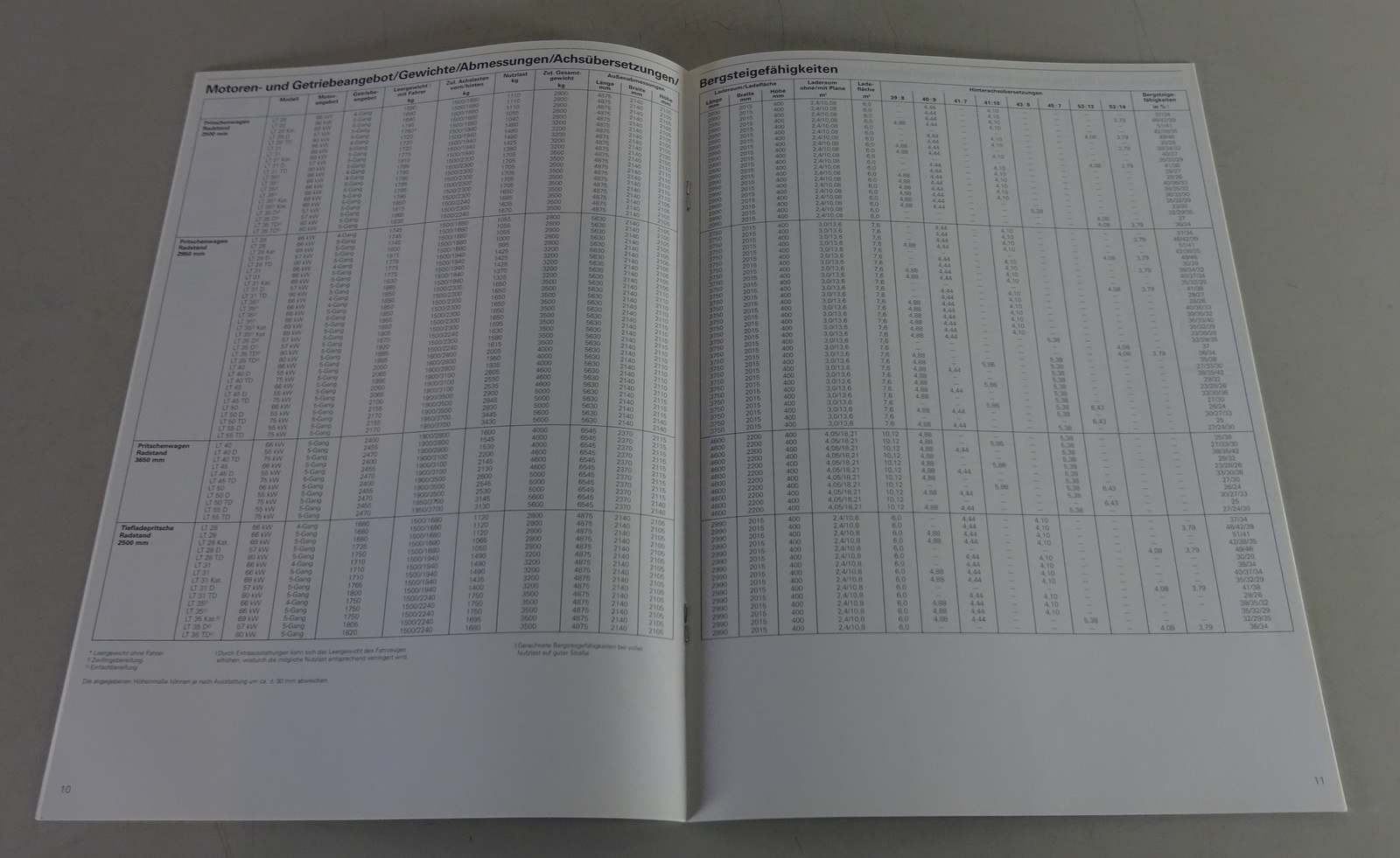 Produktinformationen "Prospekt Technische Daten & Ausstattungen VW LT Kastenwagen, Pritsche.. von 1990"