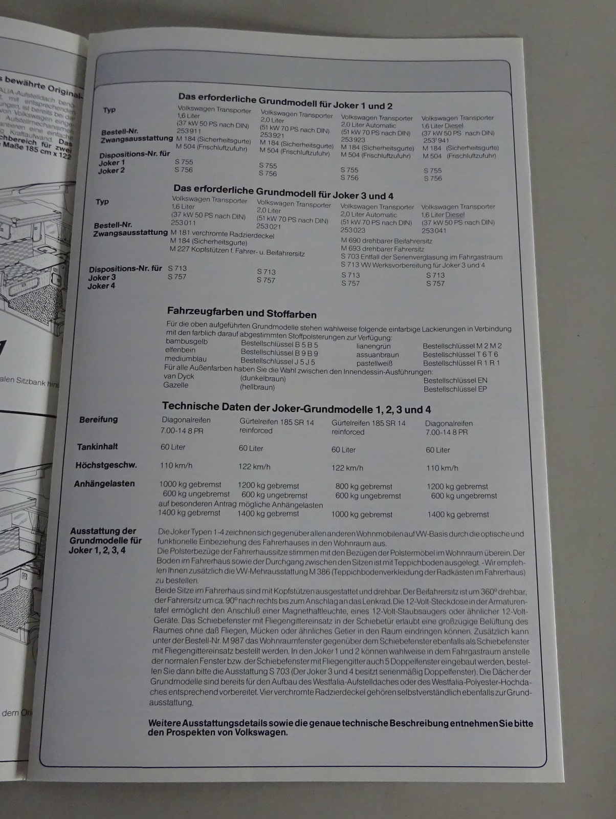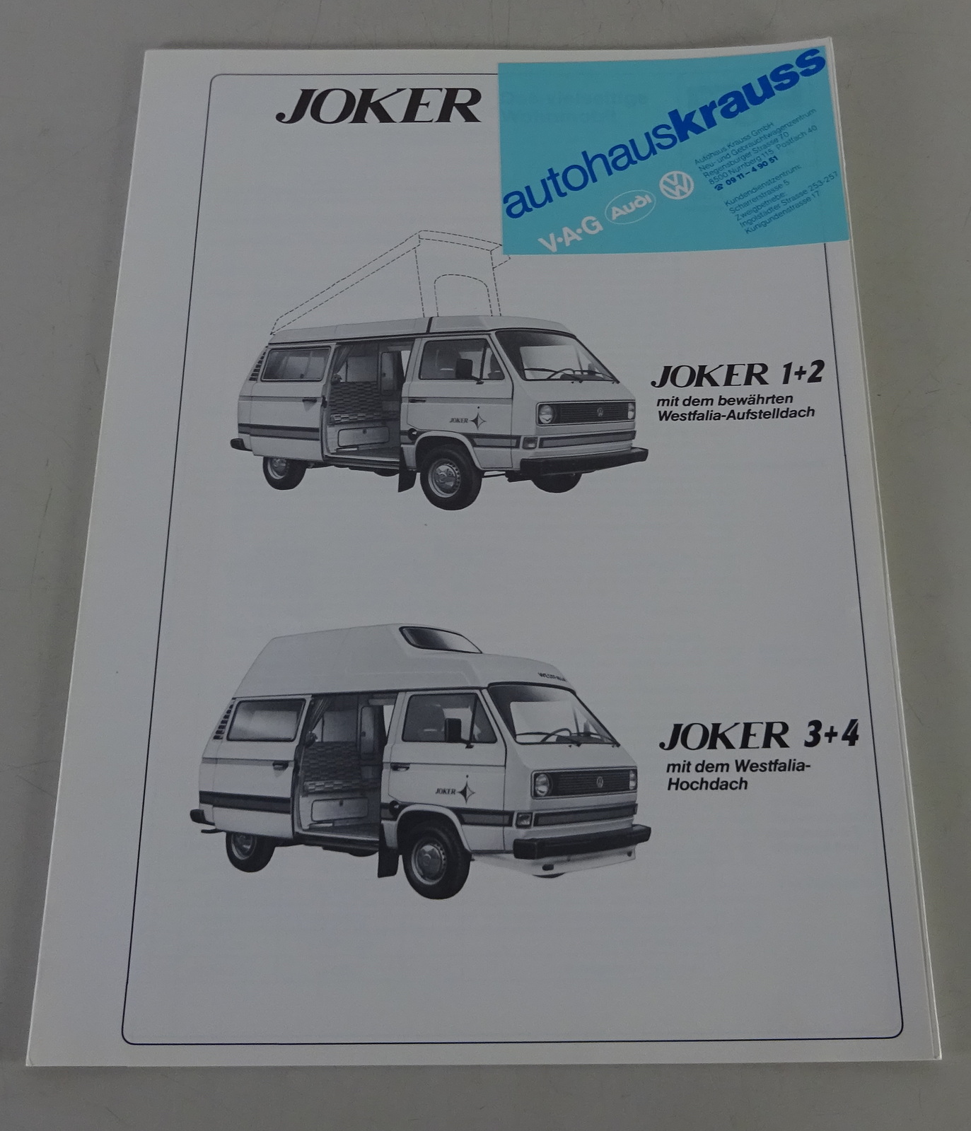 Prospekt / Broschüre VW Bus T3 Westfalia Joker 1 + 2 und Joker 3 + 4