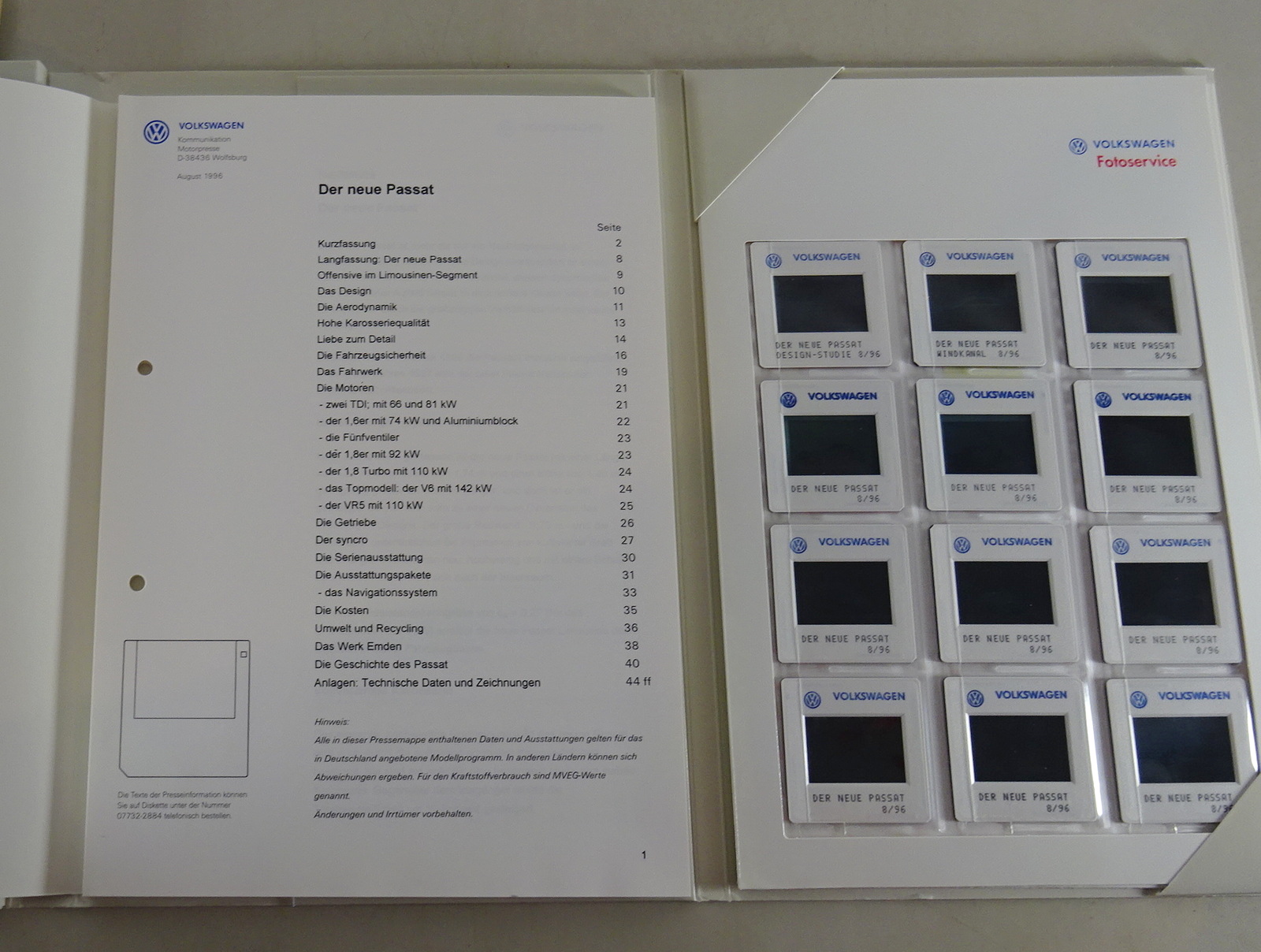 Produktinformationen "Pressemappe VW Passat B5 von 08/1996"