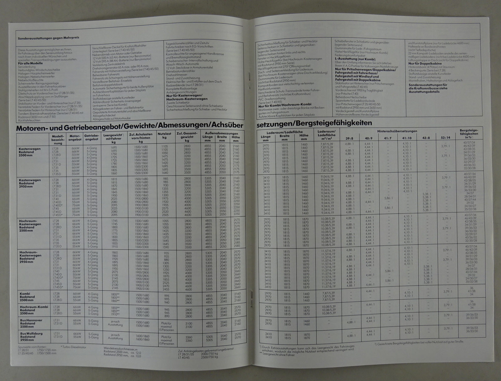 Prospekt Technische Daten & Ausstattungen VW LT als Kastenwagen, Pritsche, etc.