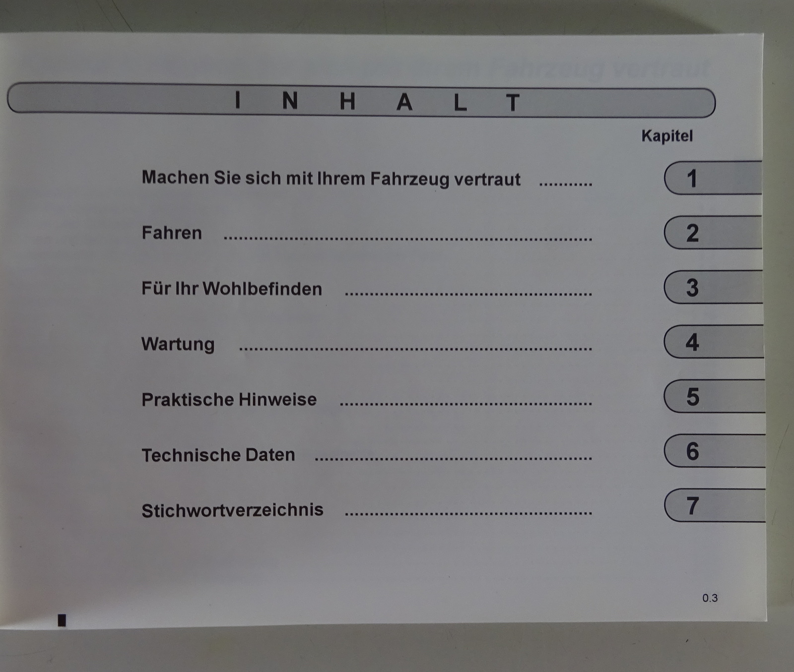 Inhalt: Technische Daten, Bedienung, Fahrhinweise, Selbsthilfe, Wartung/Pflege etc.