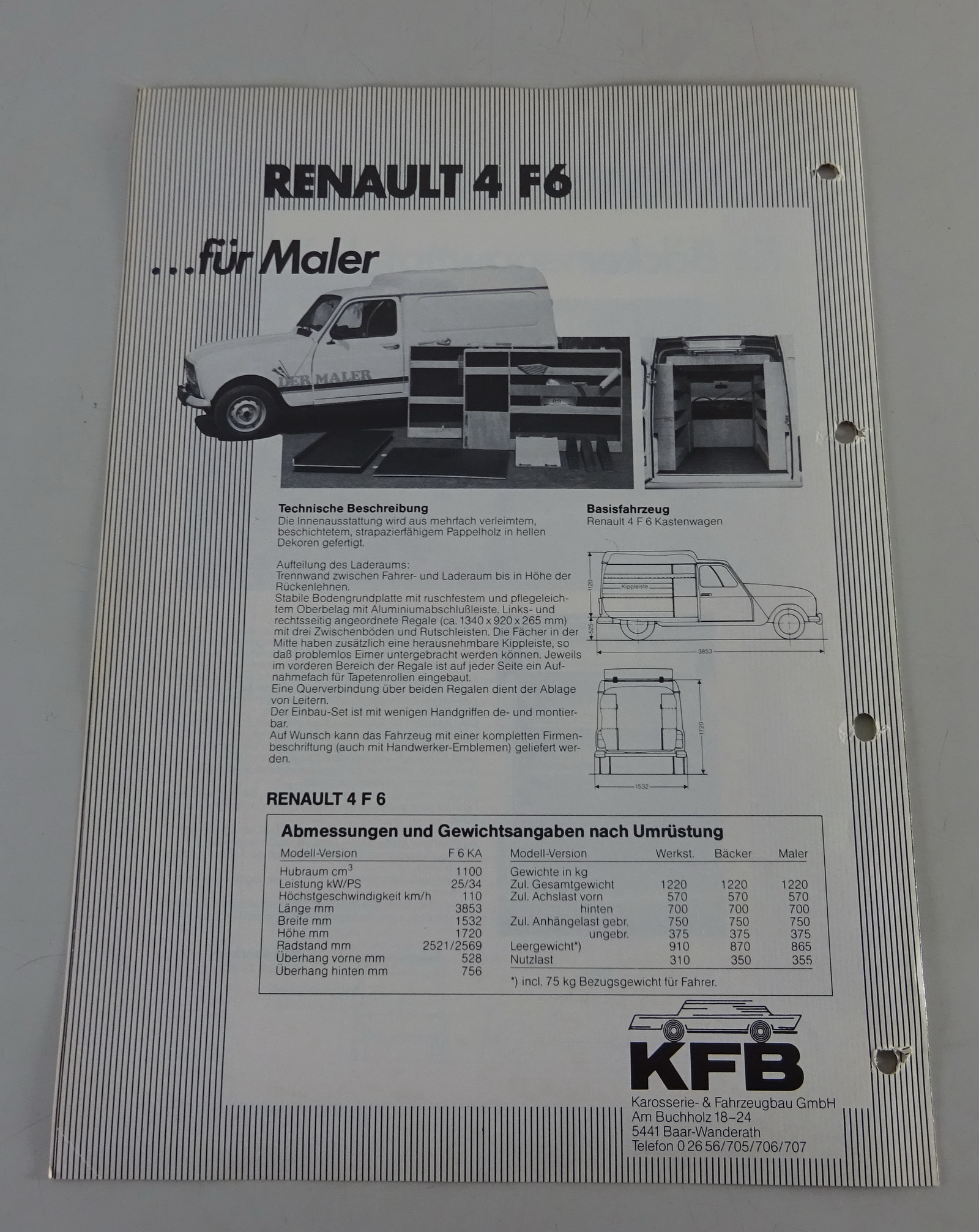 Prospekt / Broschüre original KFB Renault R4 F6  Transporter KFB... mehr