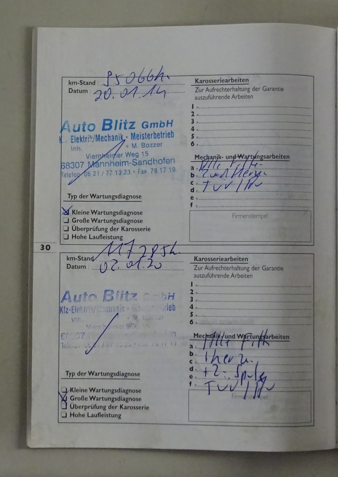 Inhalt: Betriebsanleitung, Kurzanleitung, Serviceplan / Scheckheft mit Einträgen bis 61.973 km.