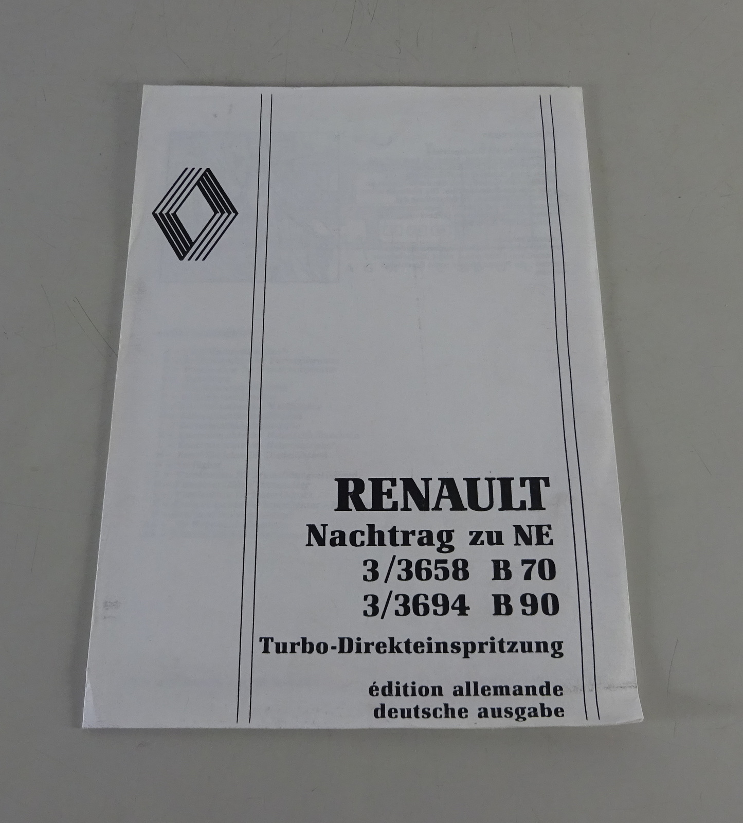 Betriebsanleitung / Handbuch Renault LKW Nachtrag B 70 / B 90 Stand 04/1989