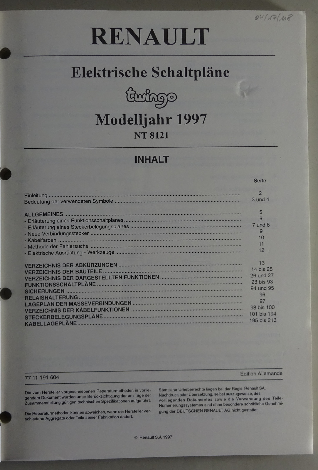 Werkstatthandbuch / Elektrische Schaltpläne Renault Twingo Modelljahr 1997