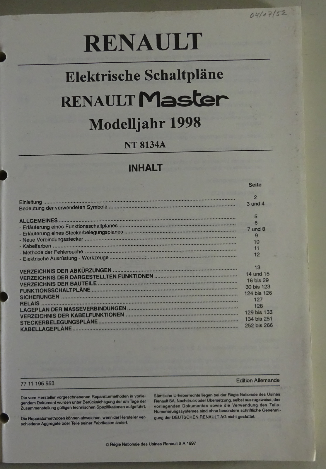 Schaltpläne Renault Master II | Modelljahr 1998