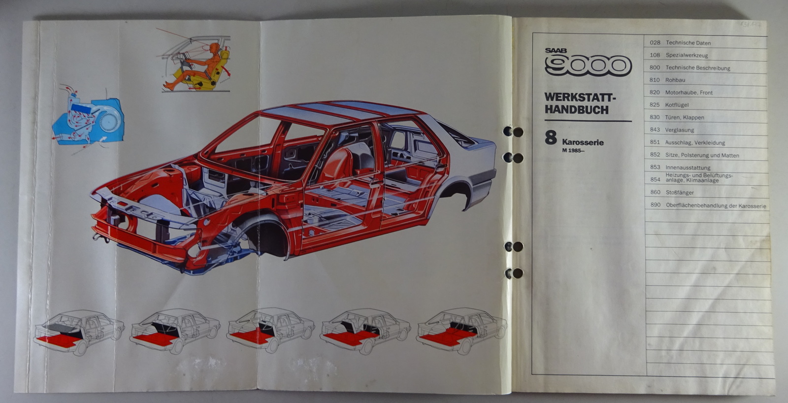 Werkstatthandbuch Saab 9000 Karosserie Baujahr 1985 Stand 1984