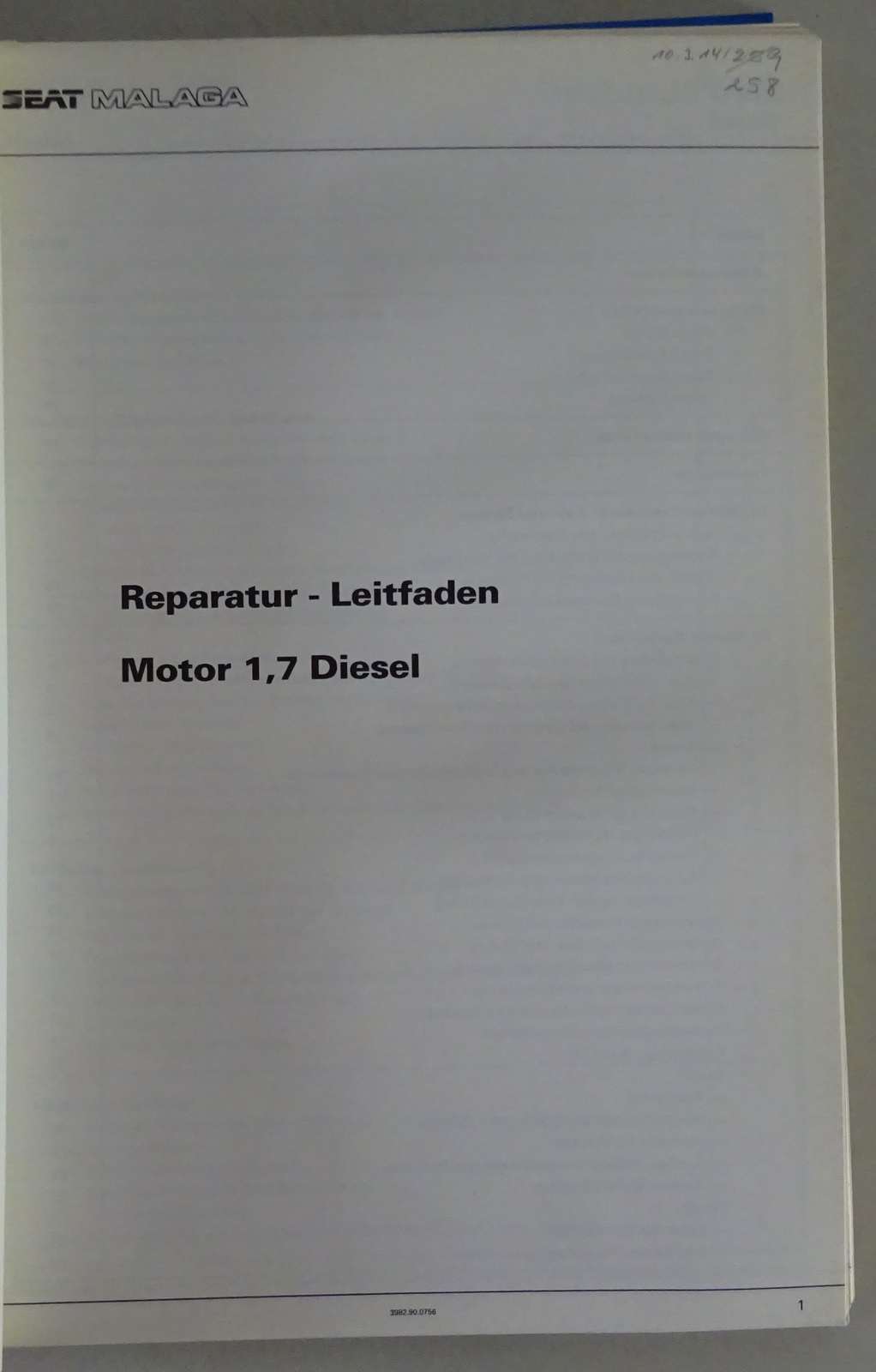 Werkstatthandbuch / Reparaturleitfaden Seat Malaga Motor 1,7L Diesel
