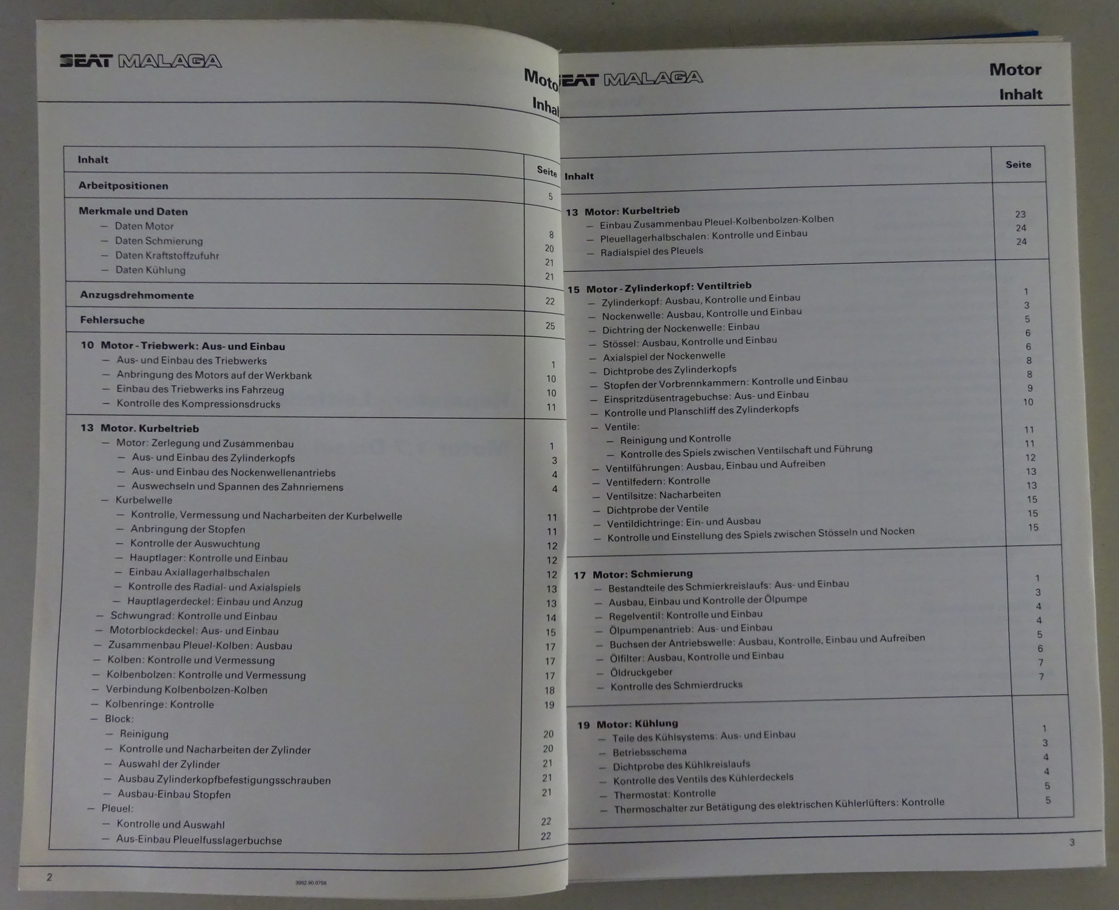 Werkstatthandbuch / Reparaturleidfaden original Seat Seat Malaga Motor... mehr