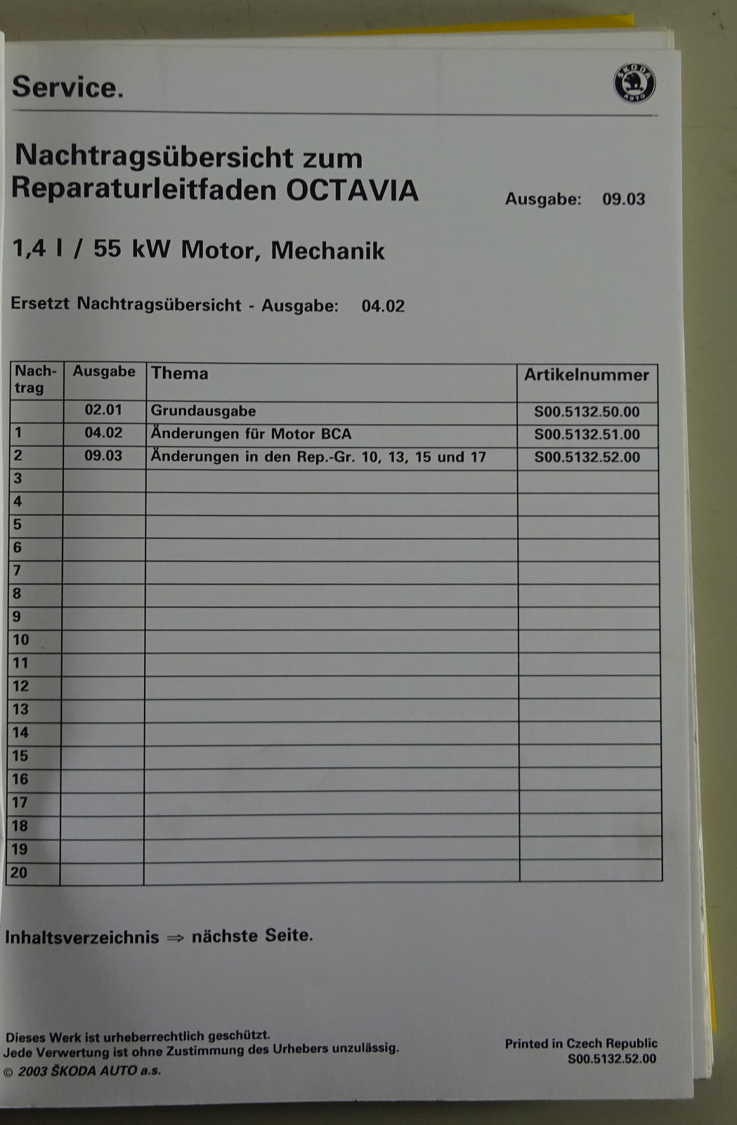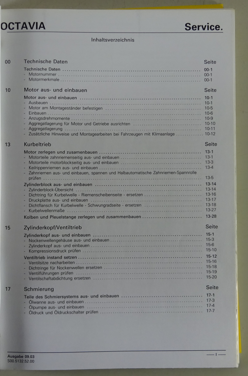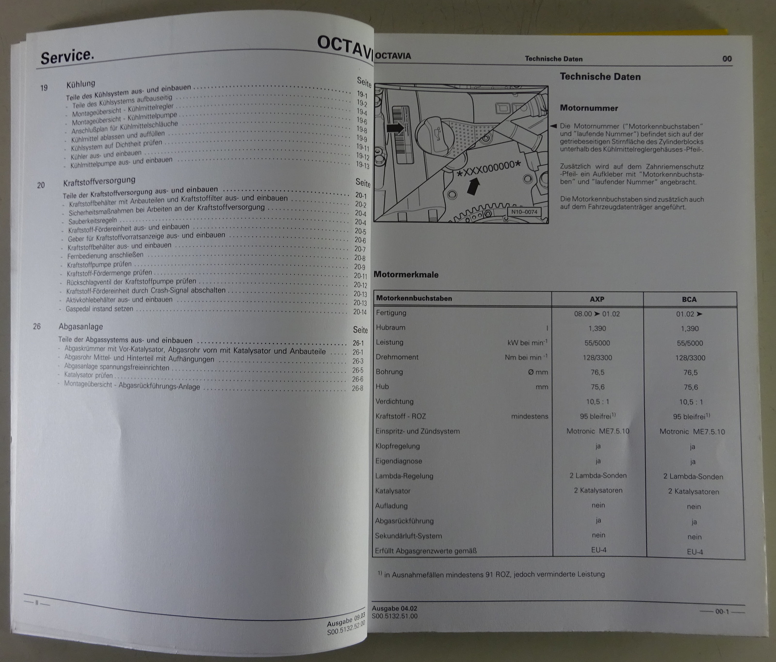 Werkstatthandbuch Skoda Octavia 1,4L 55kW Motor - Mechanik Stand 02/2001