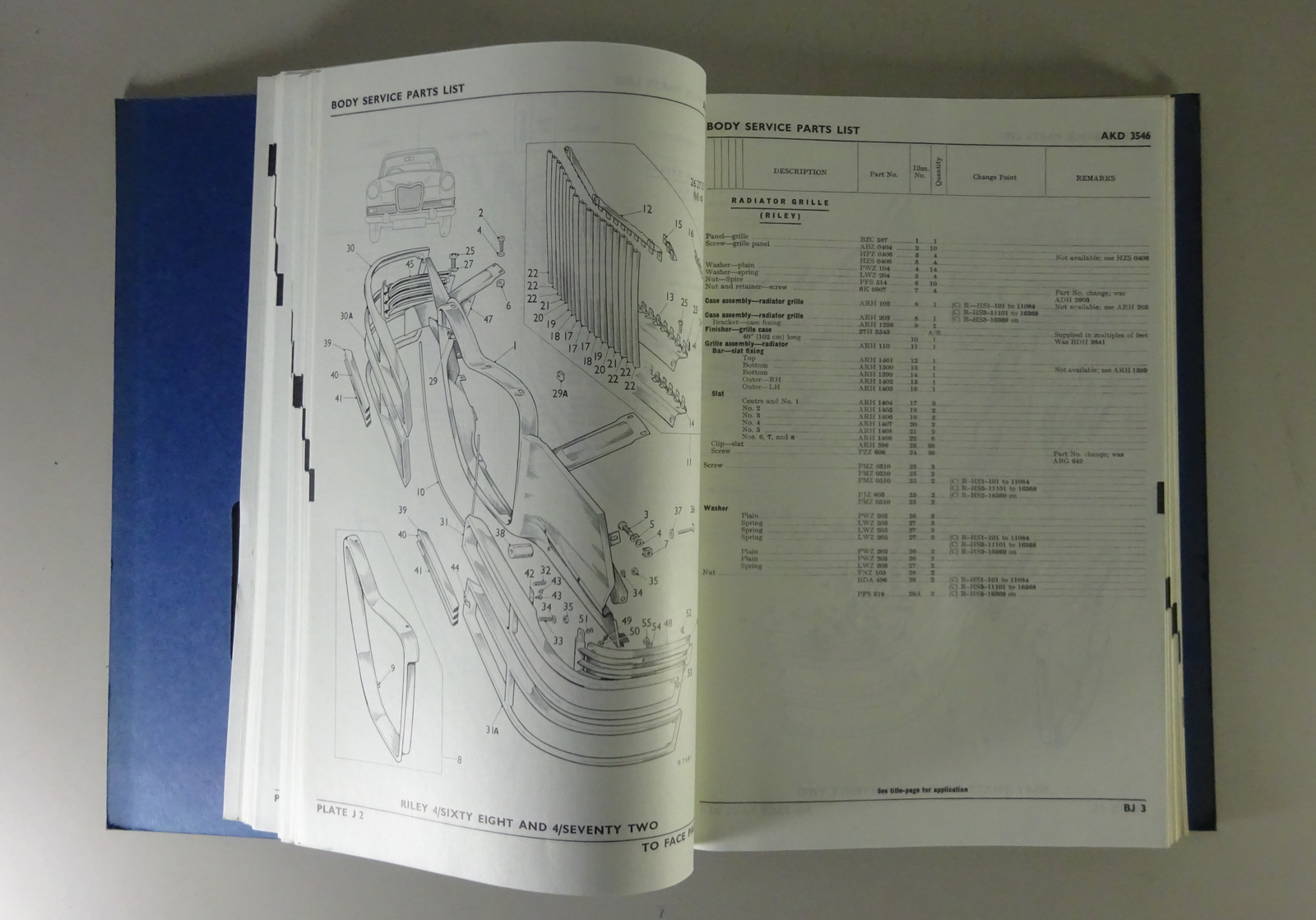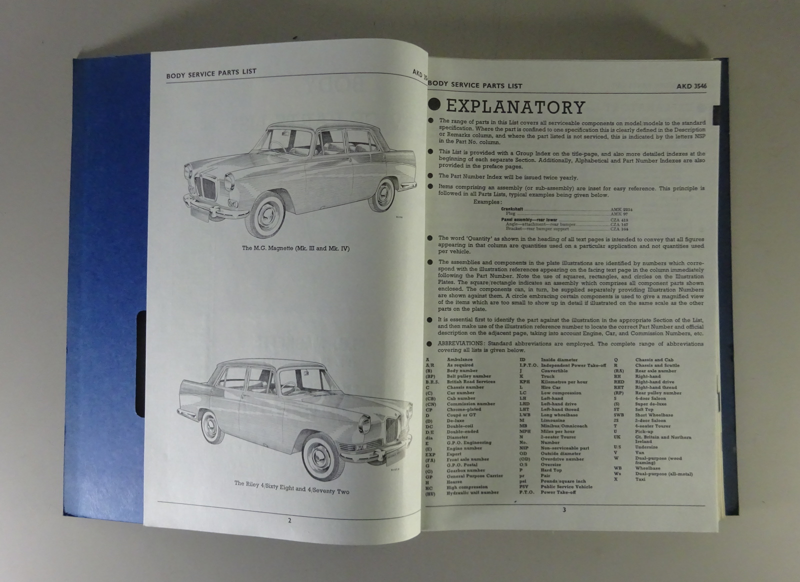 Teilekatalog / Spare Parts List BMC MG Magnette / Riley 4/68 + 4/72 Body '1966