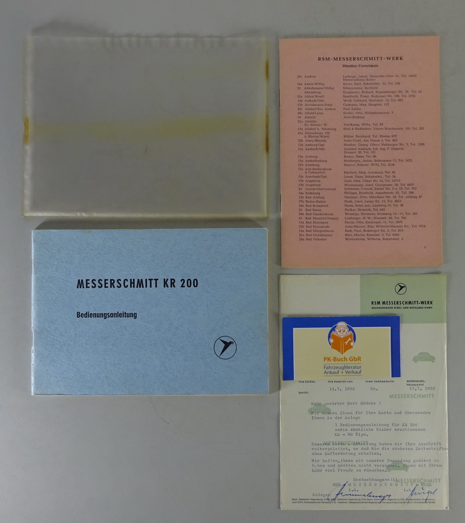 Bordmappe + Betriebsanleitung / Handbuch Messerschmitt Kabinenroller KR 200 1956