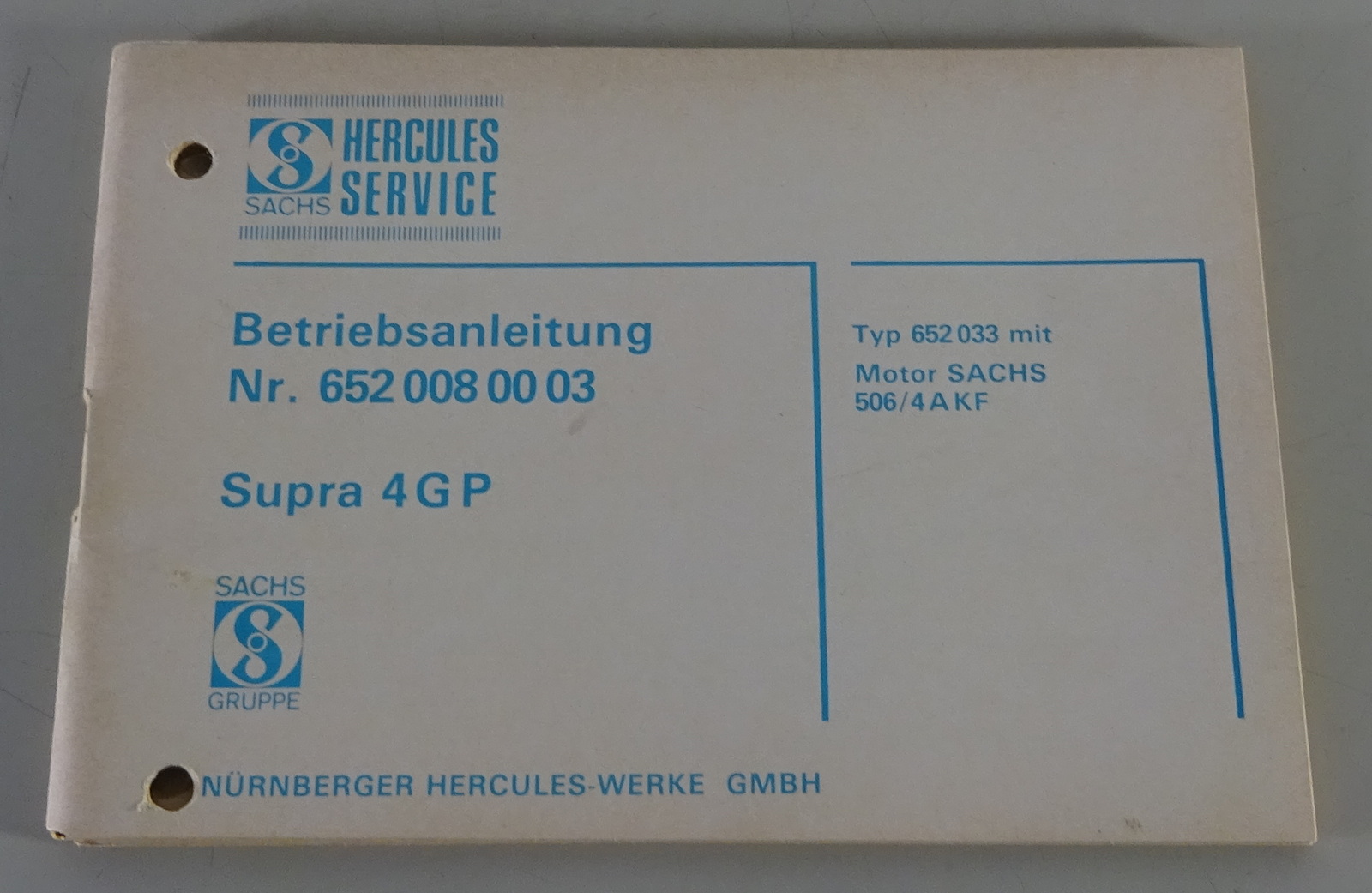 Betriebsanleitung / Handbuch Hercules Supra 4 GP mit Sachs Motor 506/4 A KF