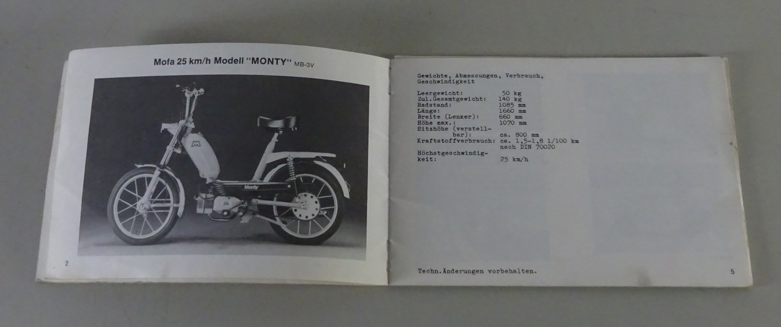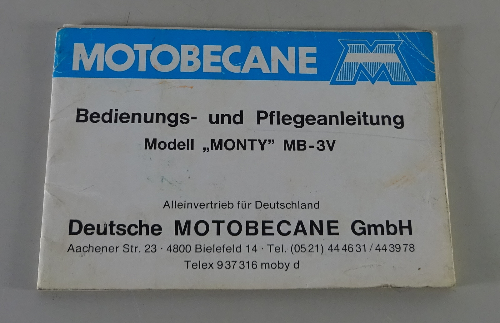 Betriebsanleitung / Handbuch Motobecane Mofa Monty MB - 3V Stand 05/1977