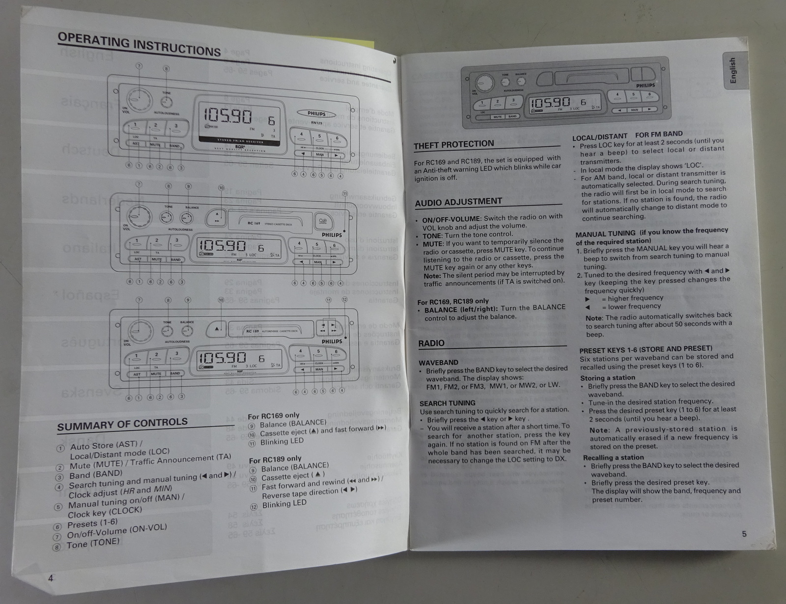 Betriebsanleitung Philips Autoradio RN 129 / RC 169 / RC 189 Stand 02/1997