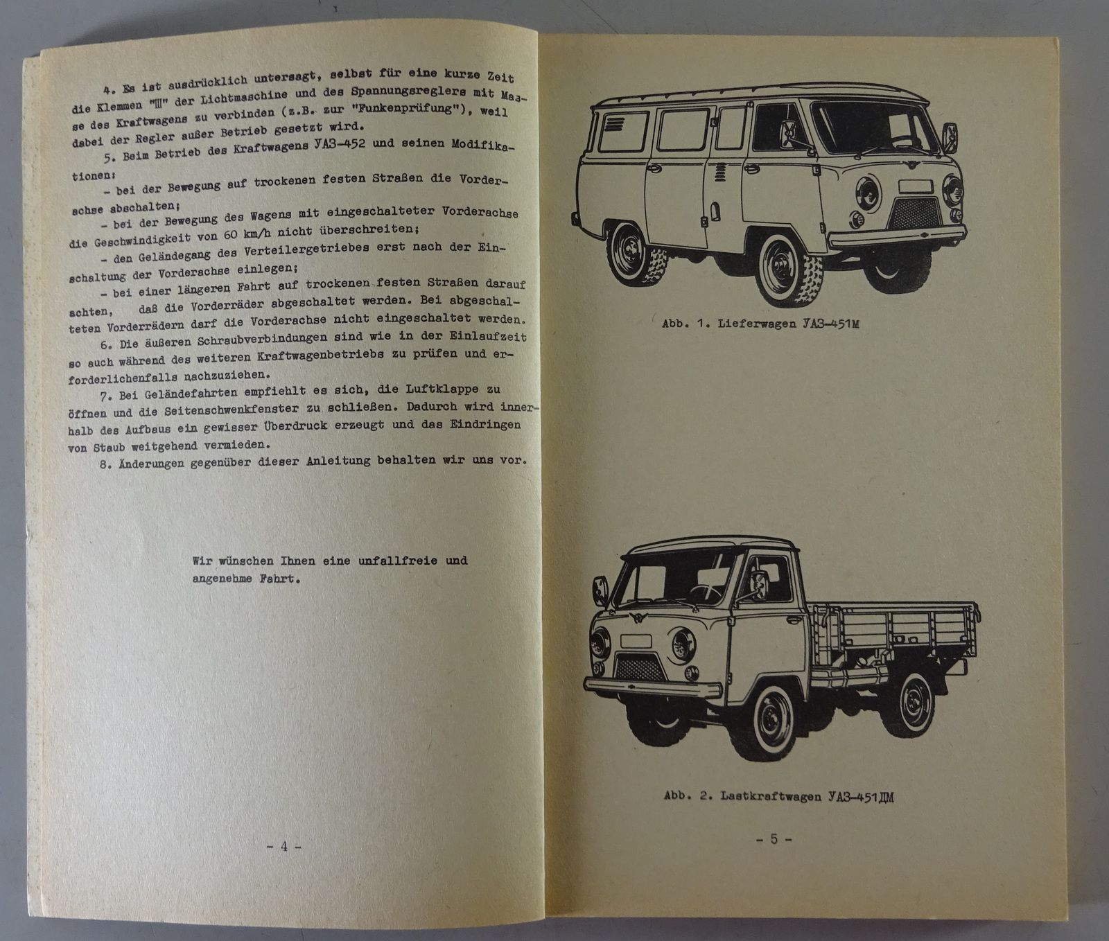 Betriebsanleitung / Handbuch UAZ 451 M / 452 Buchanka Stand ca. 1980er Jahre