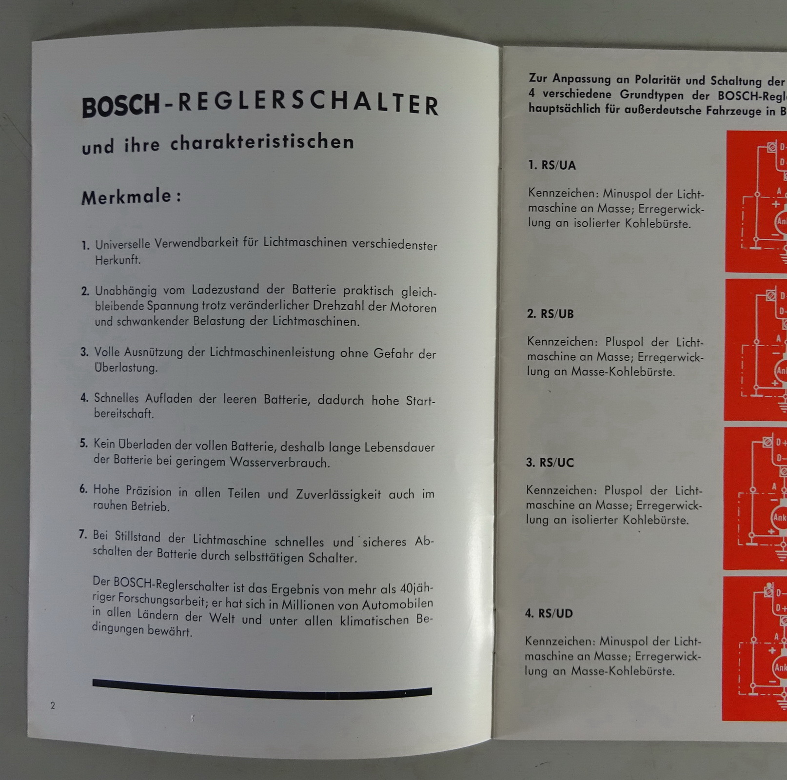 Handbuch Bosch Reglerschalter für Kraftfahrzeuge Stand 11/1958