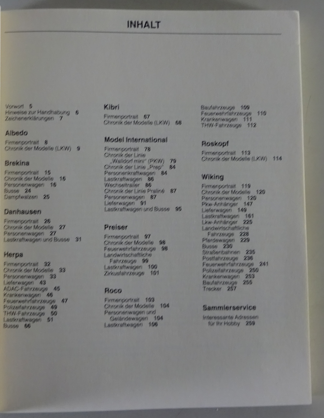 Modelle / Inhalt: Basiskatalog aller Modellautos der Firmen: