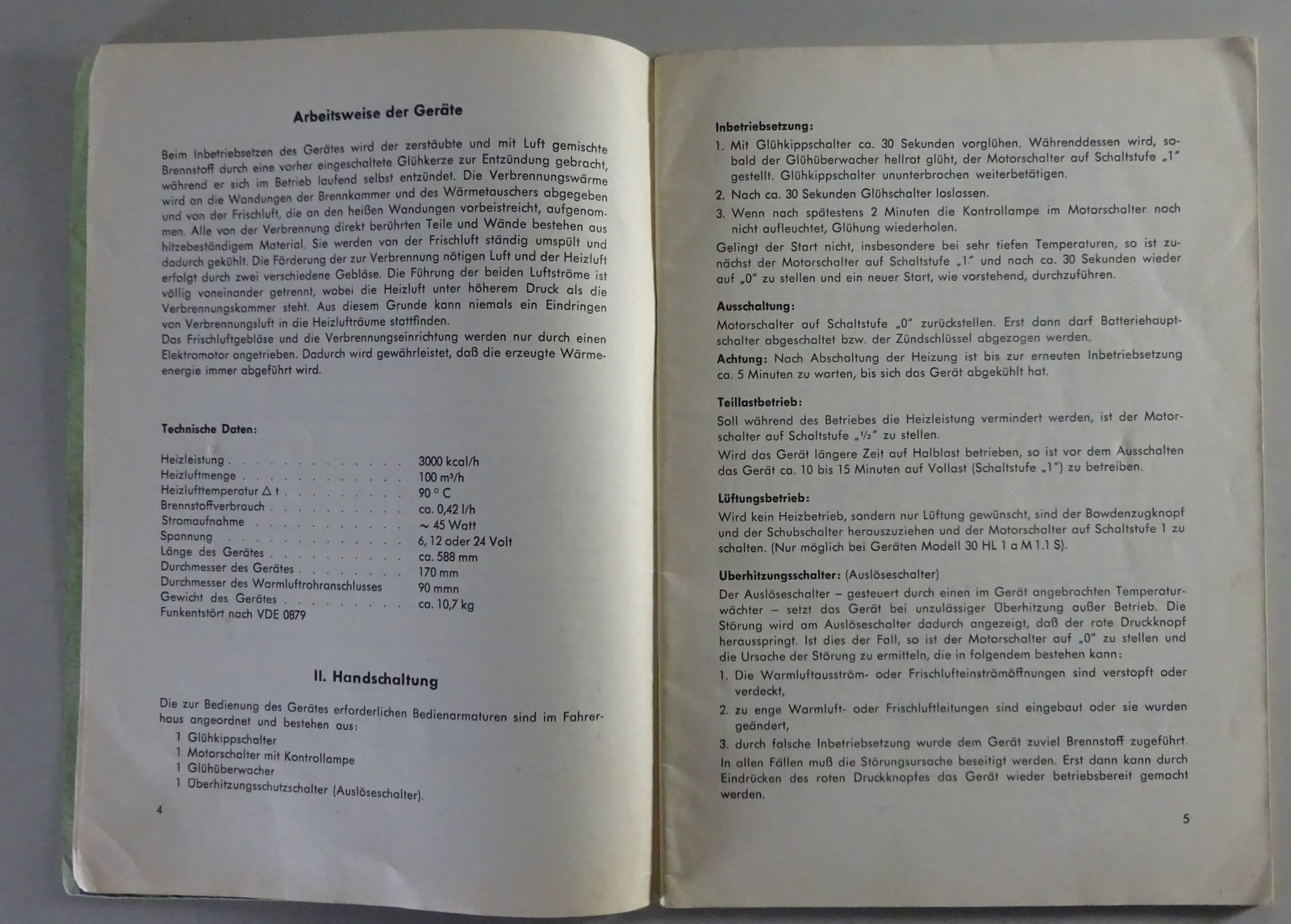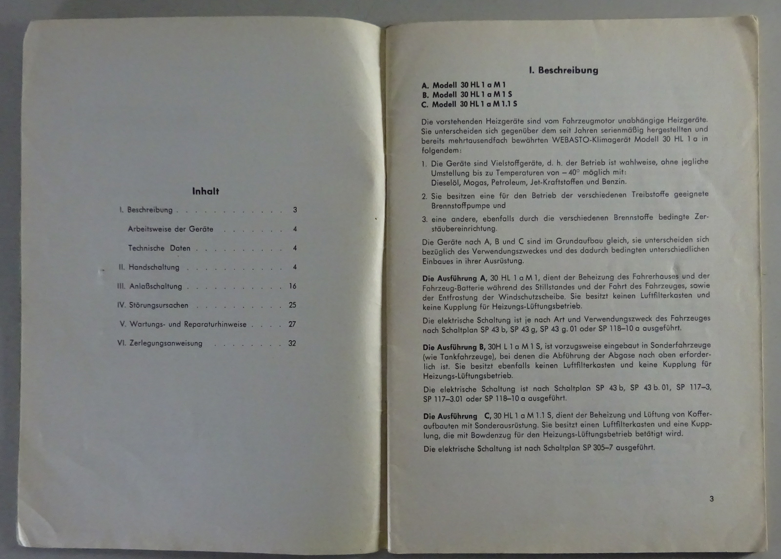 Betriebsanleitung / Handbuch Webasto Heizgeräte 30 HL a M1 / M1 S / M1.1 S