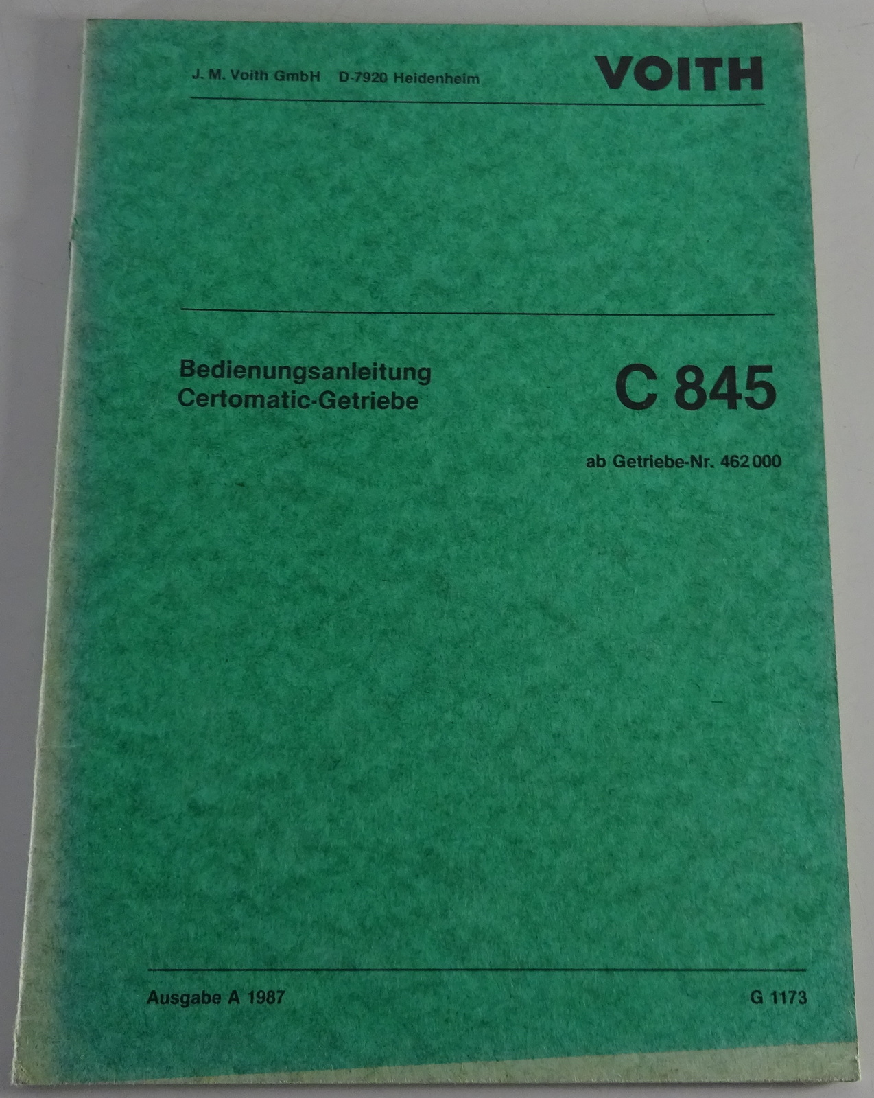 Betriebsanleitung / Handbuch Voith Certomatic Getriebe C 845 Stand 1987