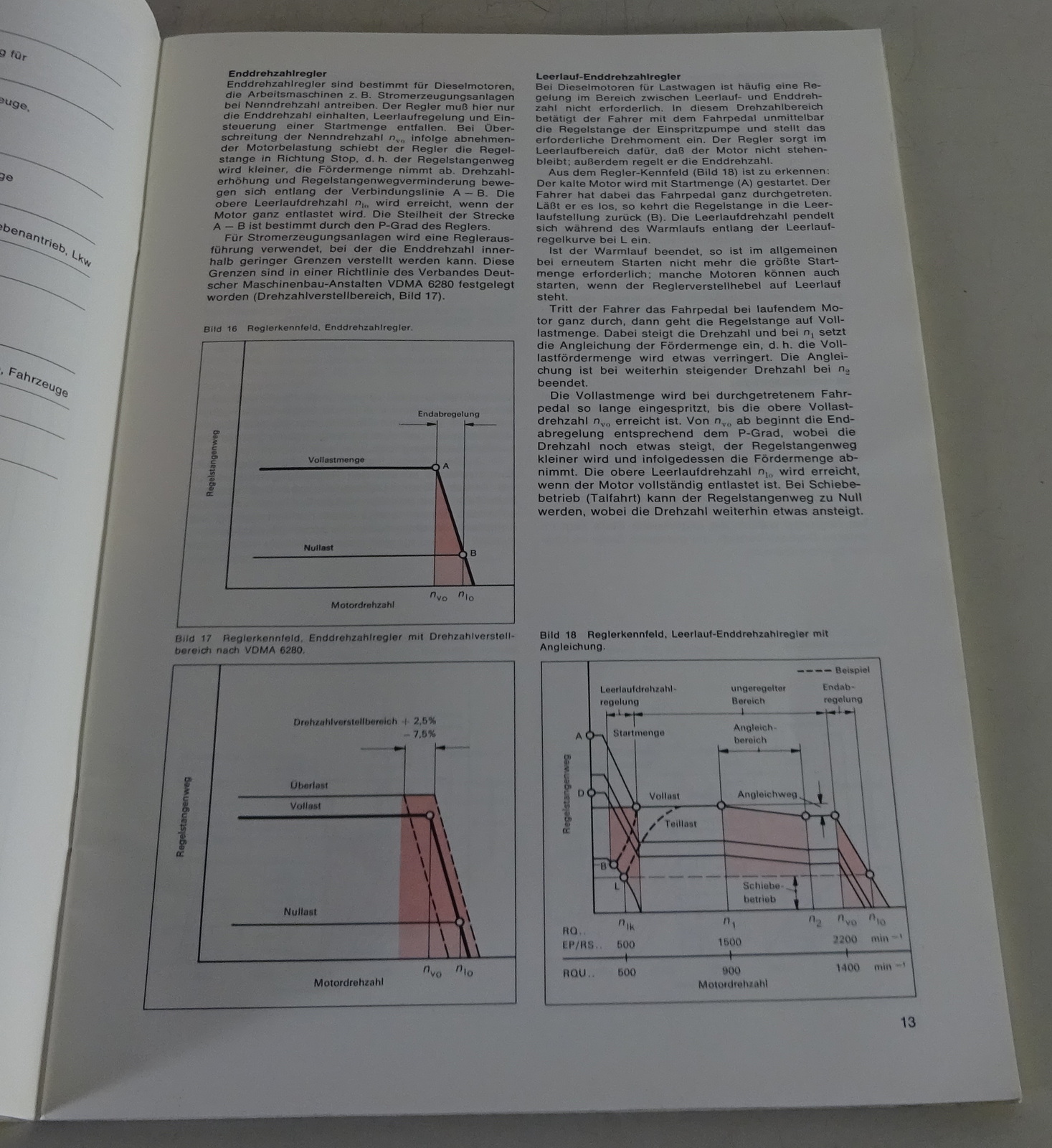 Inhalt: Allgemeines, Reglerarten, Fliehkraftgesteuerte Drehzahlregler, Verstellhebel- und Regelstangenanschläge für Fliehkraftregler, Elektrische Drehzahl-Verstellvorrichtung, Pneumatisch gesteuerter Drehzahlregler, Wartung