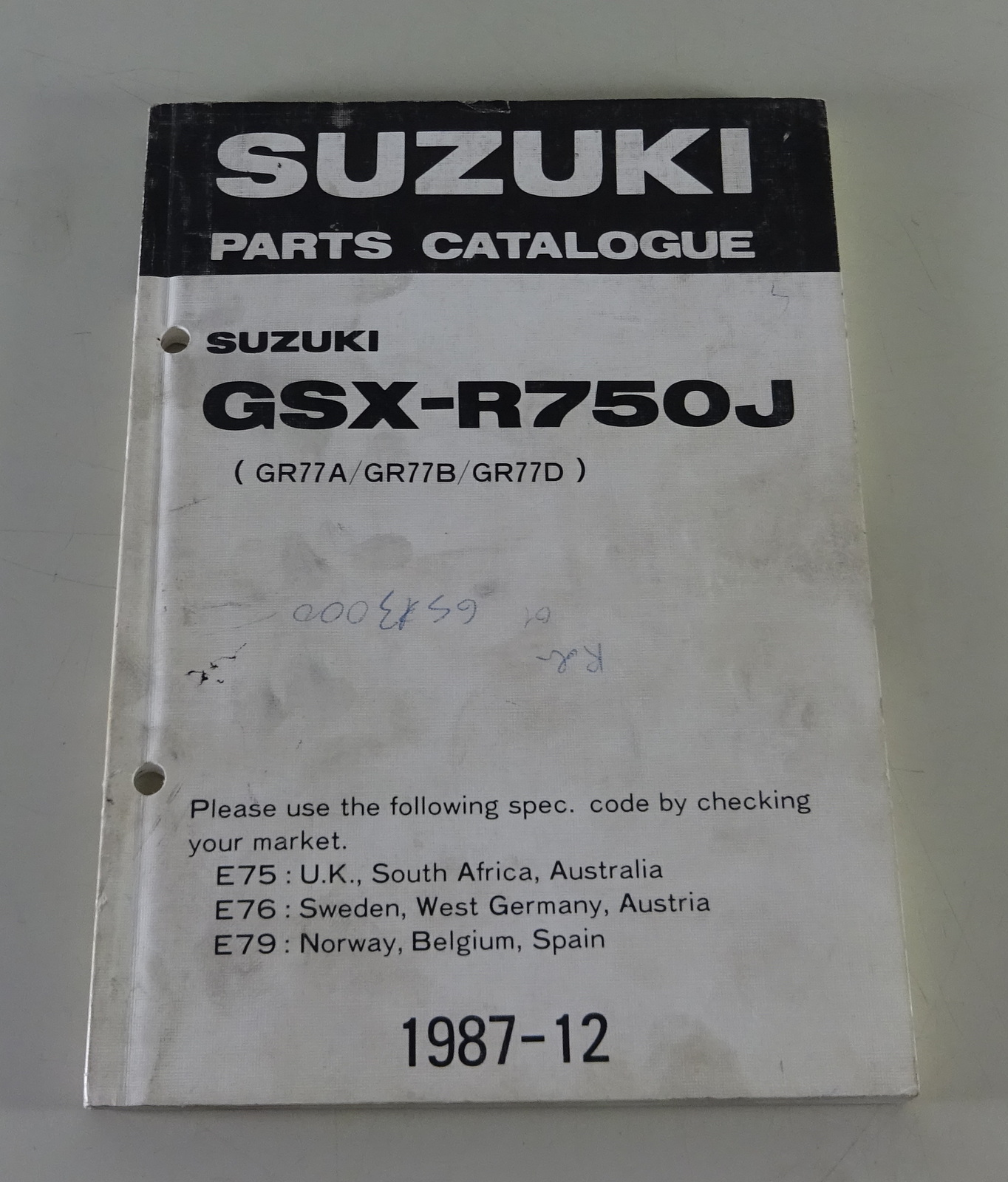 Produktinformationen "Teilekatalog Suzuki GSX - R 750 J (GR77A/ GR77B/ GR77D) Stand 12/1987"
