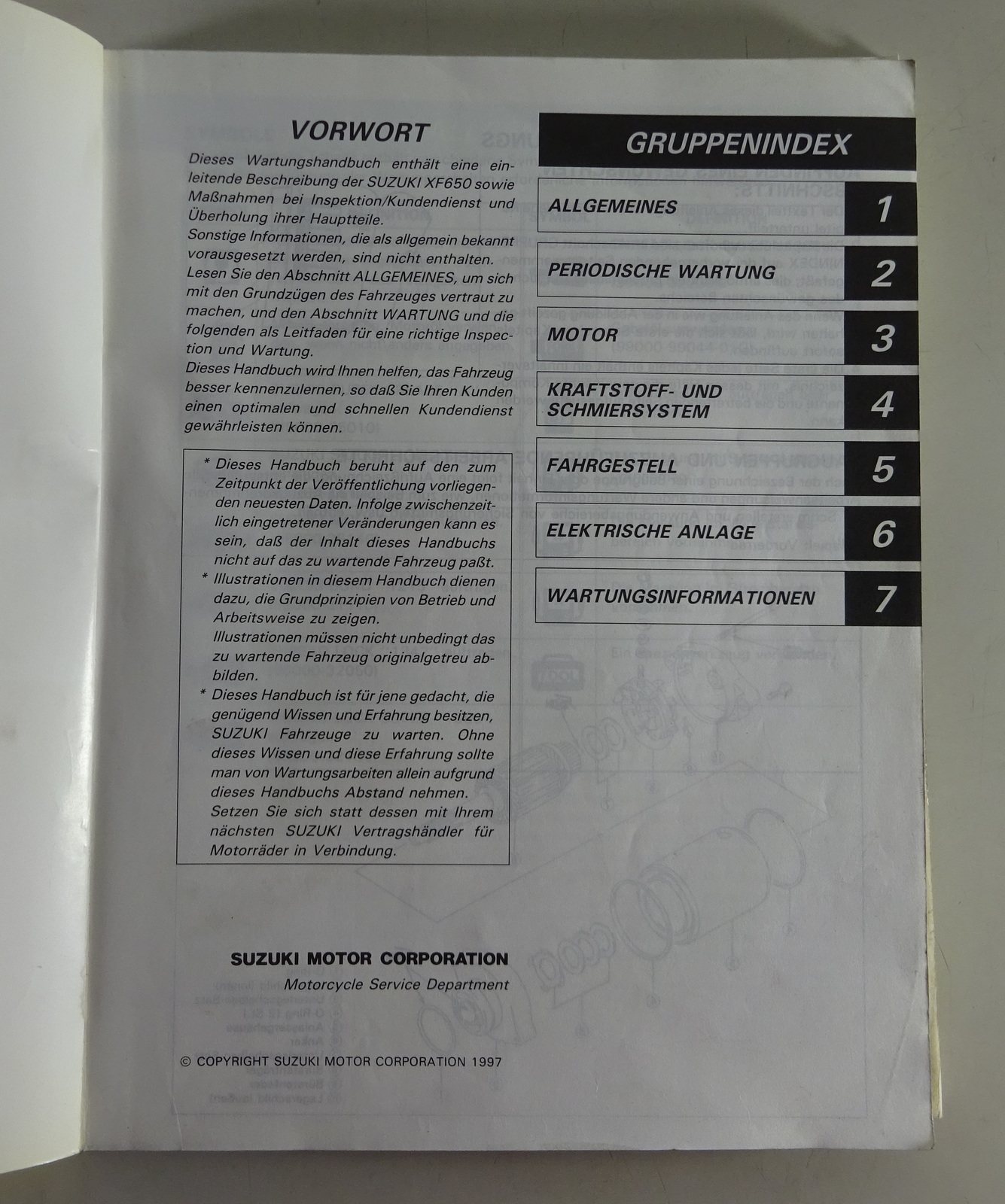 Werkstatthandbuch / Wartungsanleitung Suzuki XF 650 Freewind Stand 09/1995