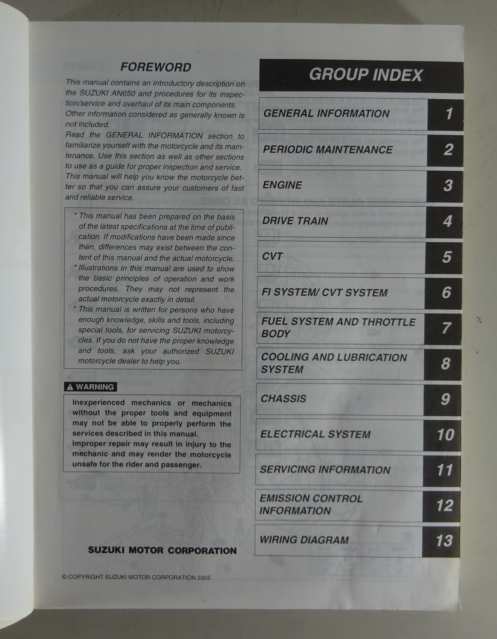 Werkstatthandbuch / Workshop Manual Suzuki AN 650 Burgman Roller Stand 07/2002