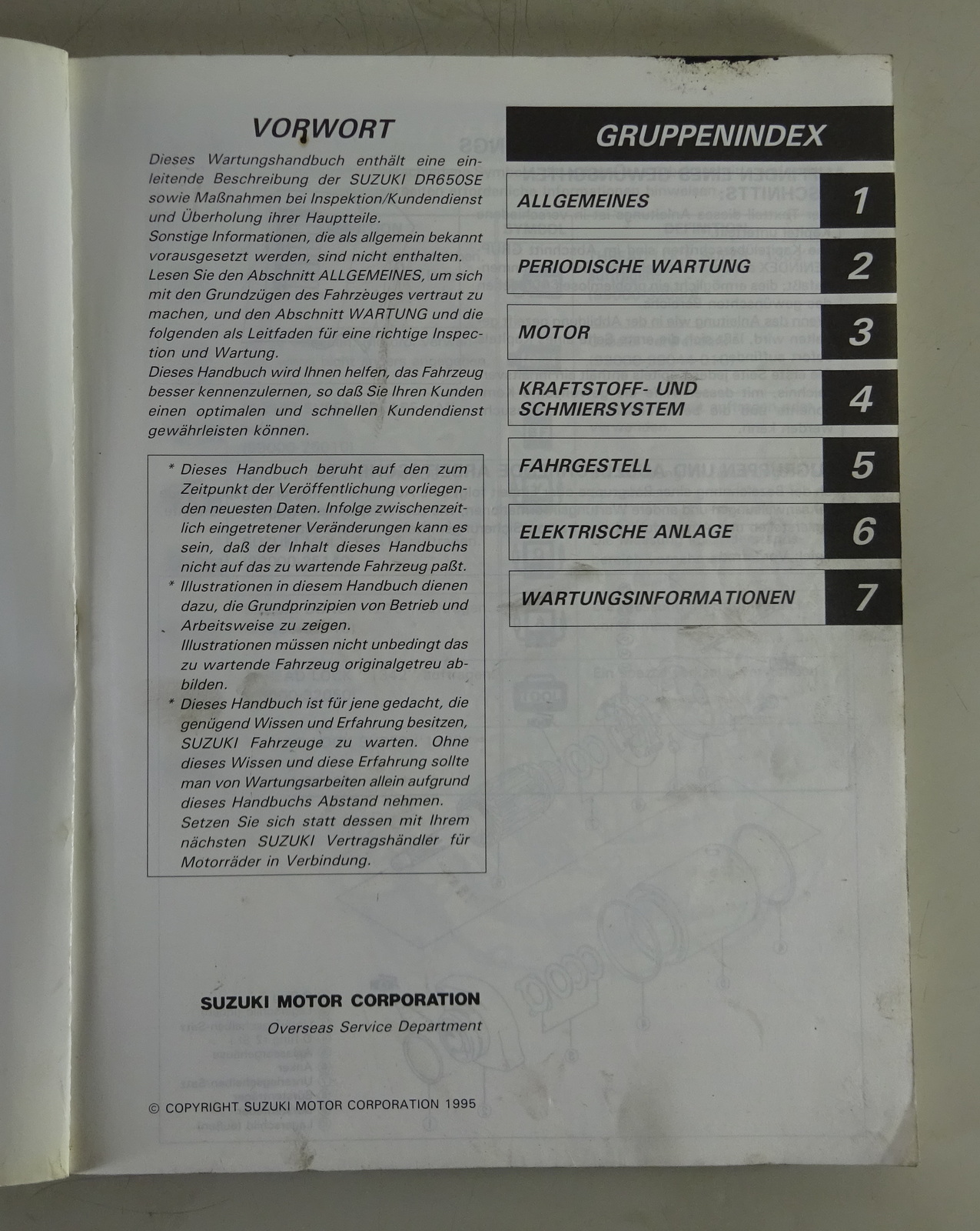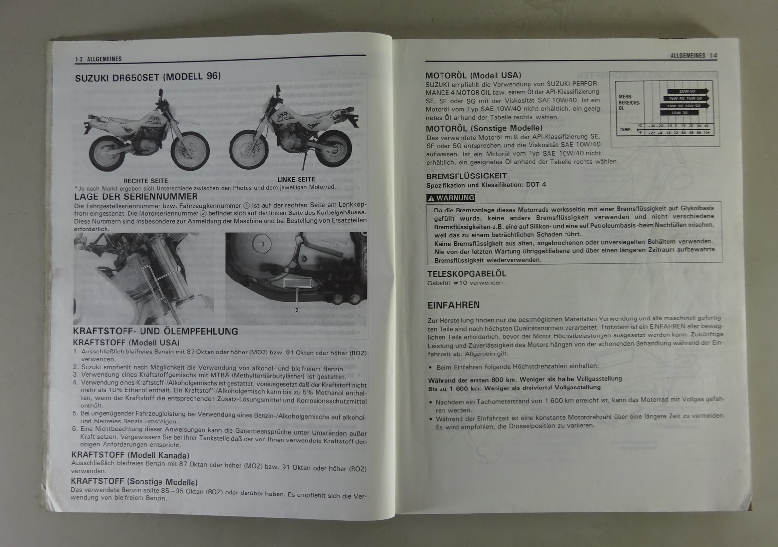 Werkstatthandbuch / Wartungsanleitung Suzuki DR 650 SE Enduro Stand 11/1995