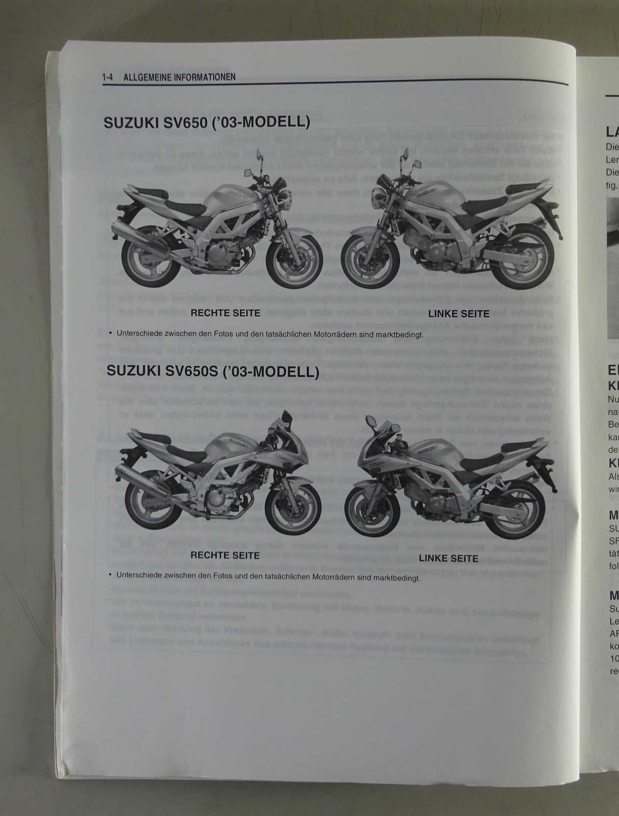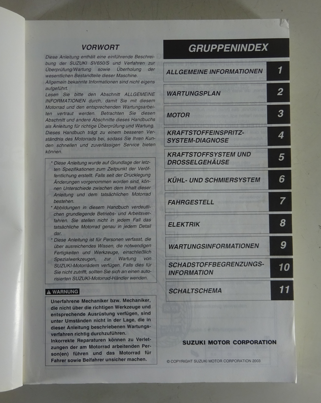 Werkstatthandbuch / Wartungsanleitung Suzuki SV650/S Sporttourer K3 von 02/2003