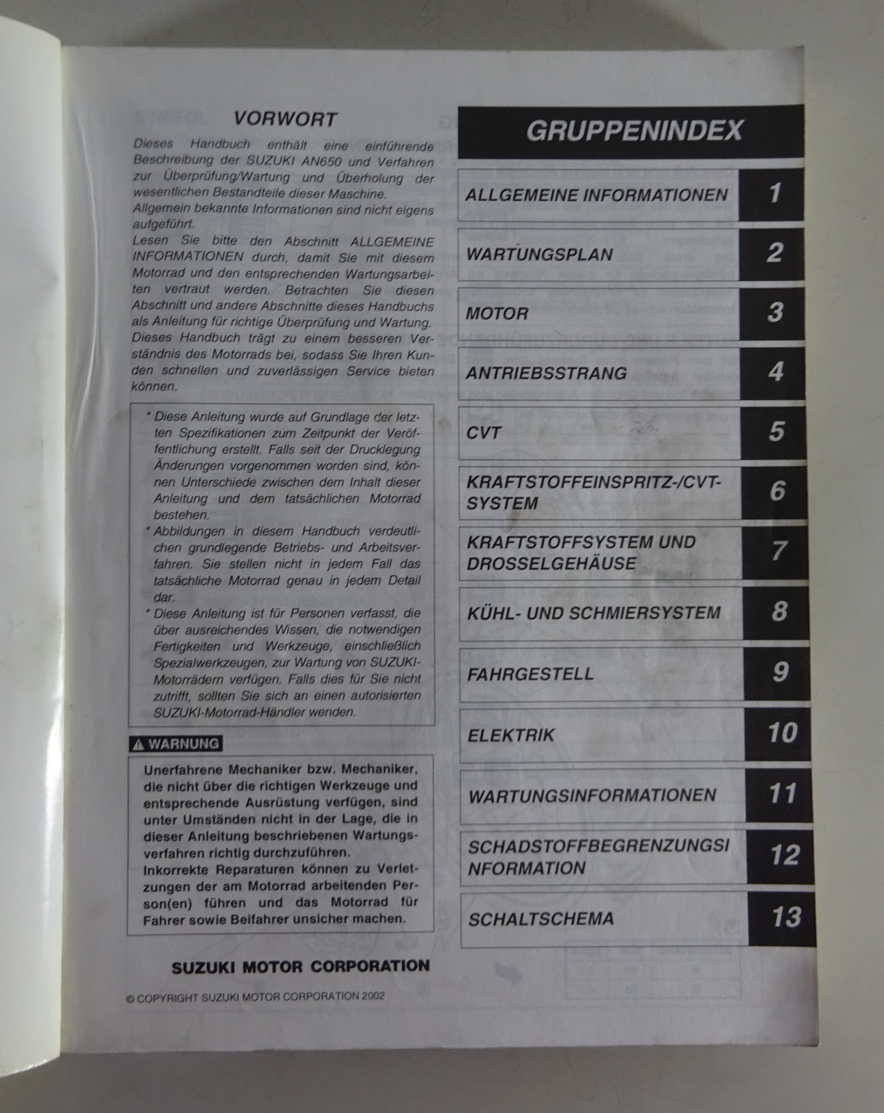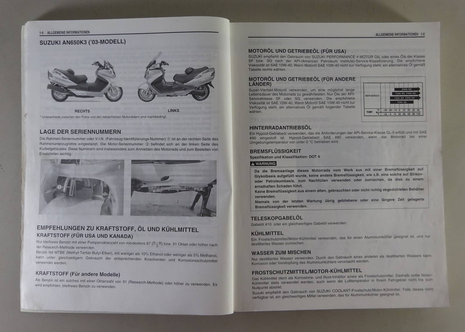 Werkstatthandbuch Suzuki AN 650 Burgmann Roller K3 Stand 08/2002