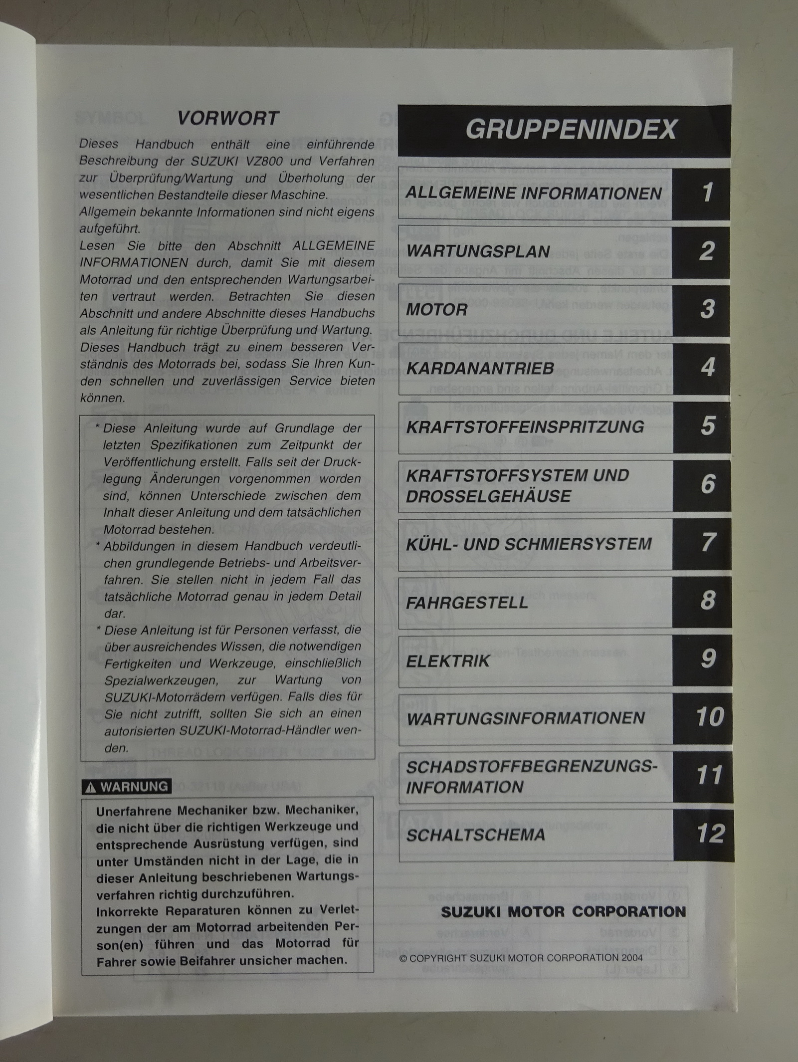 Werkstatthandbuch / Wartungsanleitung Suzuki VZ 800 Marauder K5 Stand 12/2004