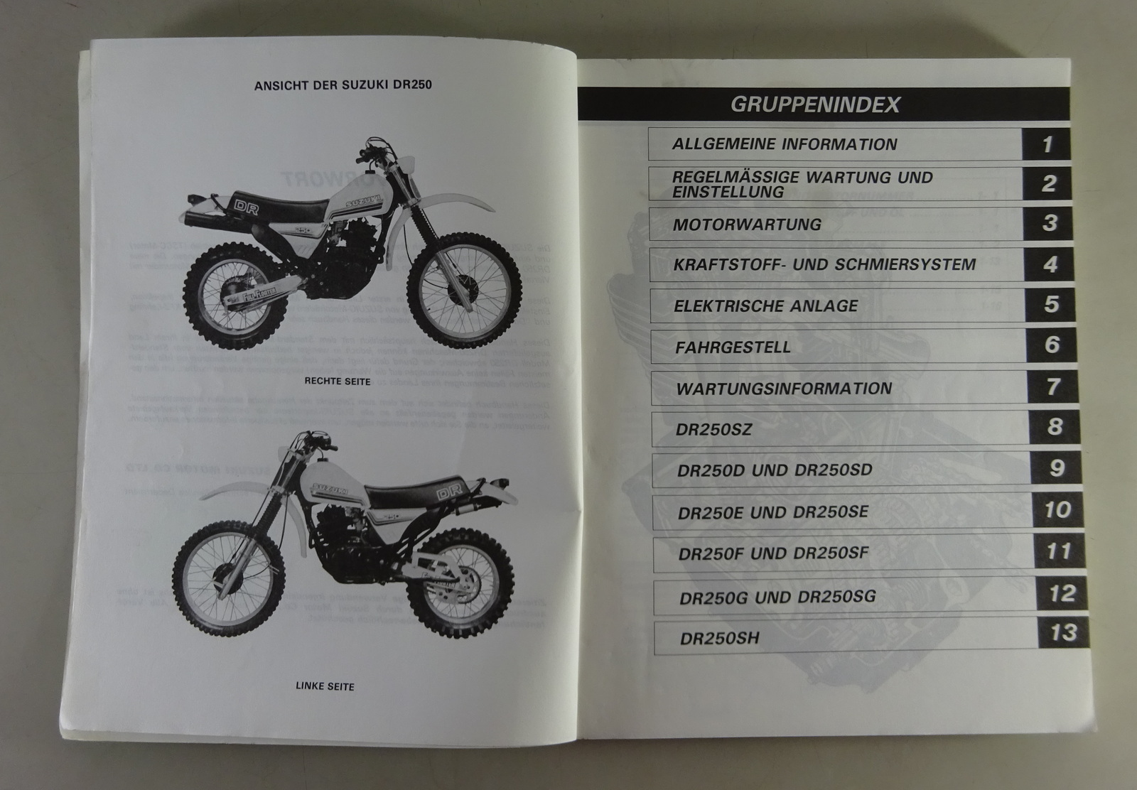 Werkstatthandbuch / Wartungsanleitung Suzuki DR 250 Enduro Stand 07/1982