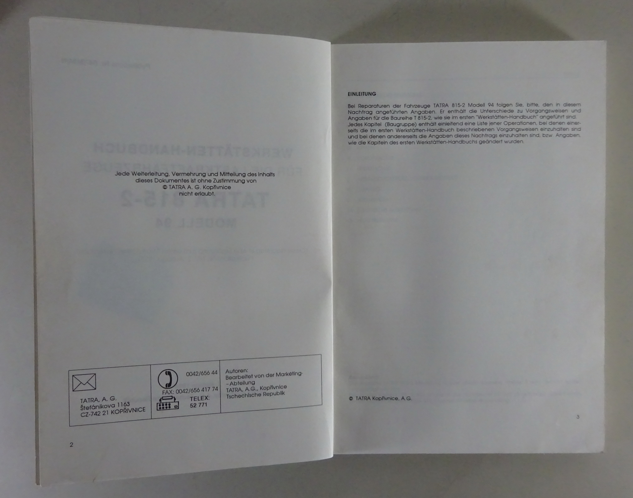Werkstatthandbuch Nachtrag / Reparaturhandbuch Nachtrag original Tatra
