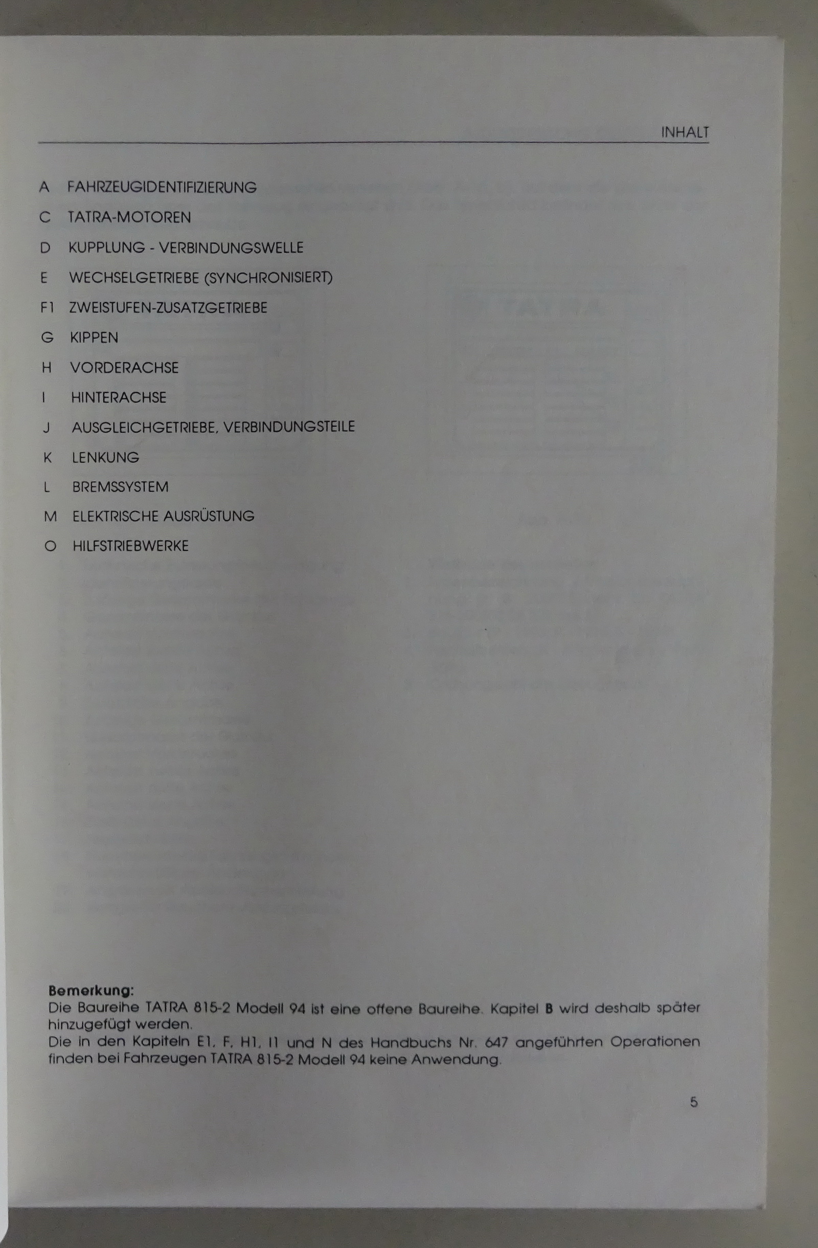 Produktinformationen "Werkstatthandbuch Nachtrag Tatra 815-2 6x6.2 / 6x6.1 / 4x4.1 / 8x8.1 Stand 1994"