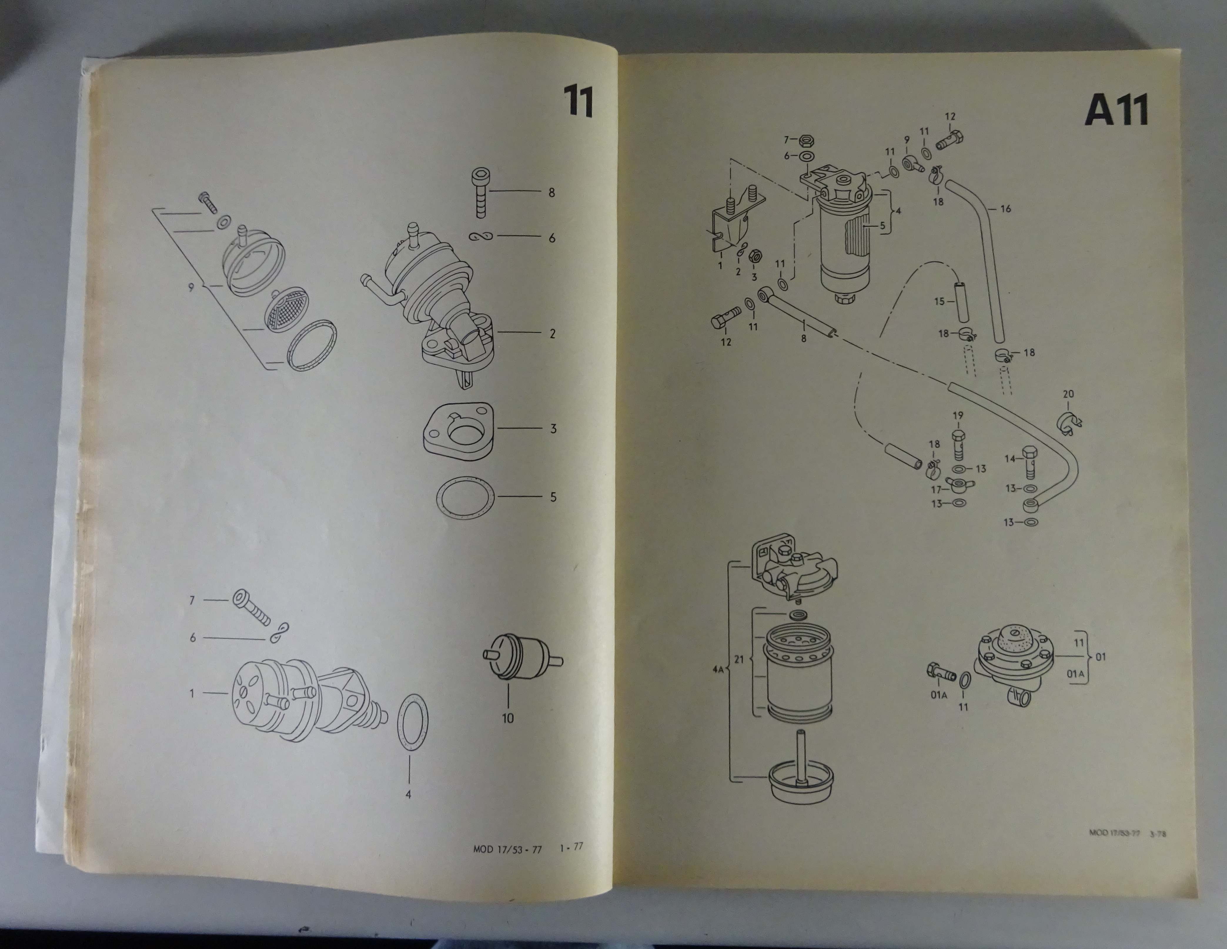 Inhalt: Bildkatalog / Ersatzteilkatalog mit Explosionszeichnungen für VW Originalteile, mit Bildtafeln-Übersicht