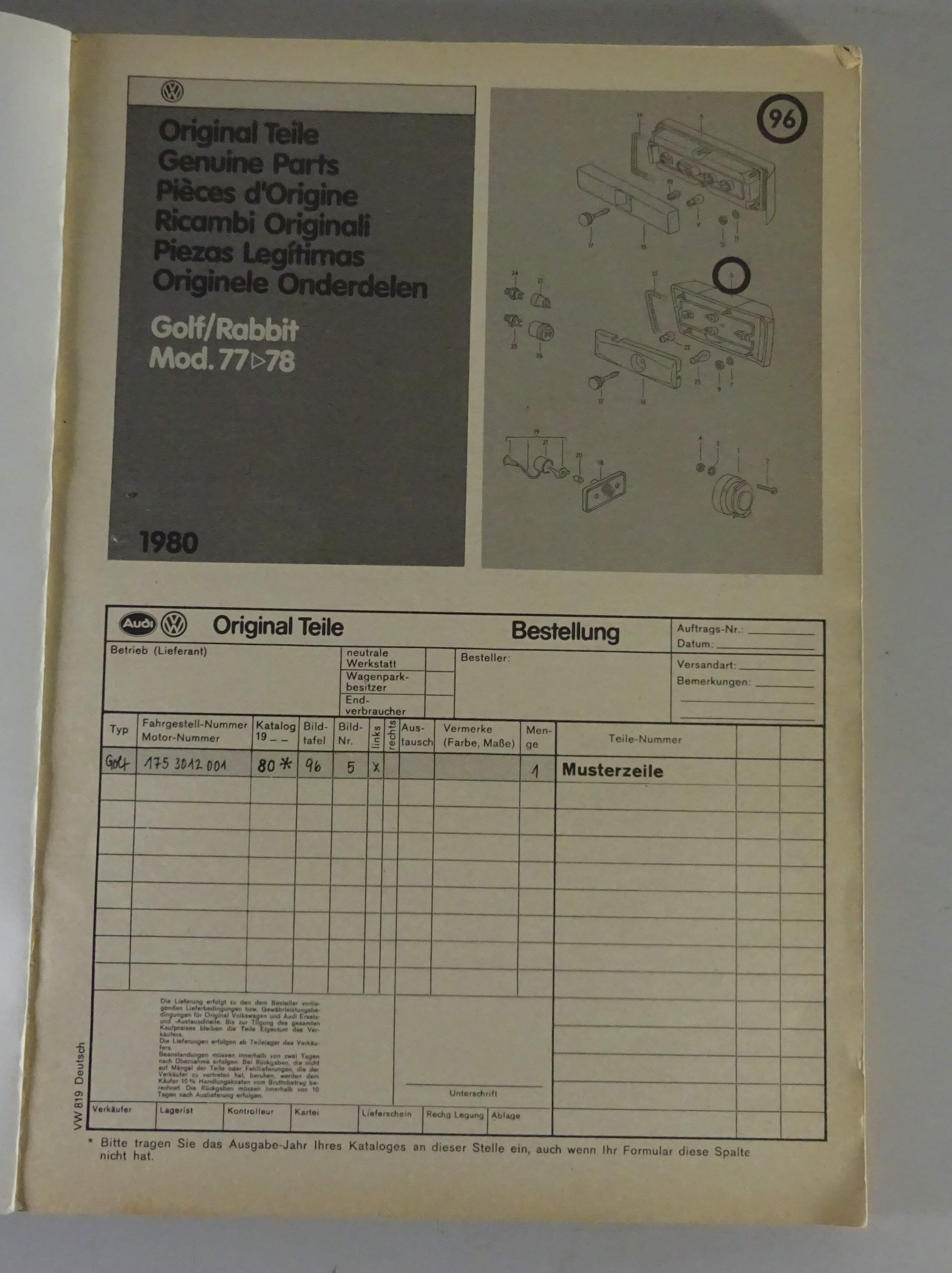 Bildkatalog / Teilekatalog VW Golf I / 1 Modelljahr 1977-1978 Ausgabe 1981