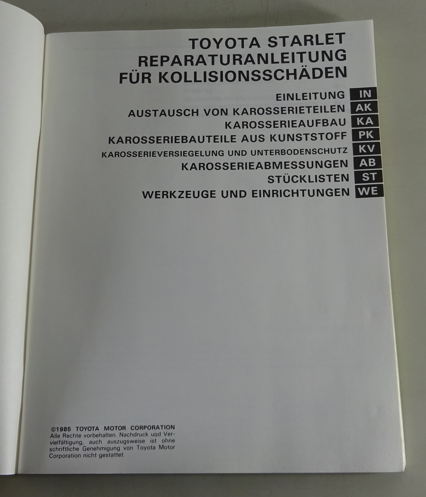 Produktinformationen "Werkstatthandbuch Toyota Starlet EP70, 71 Karosserie / Kollosionsschäden 1984"