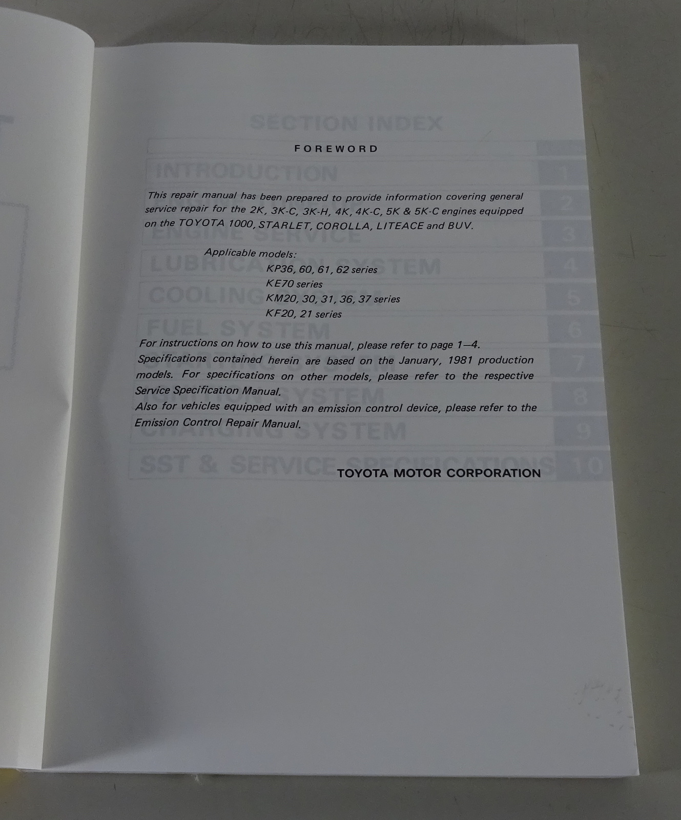 Workshop Manual Toyota K Engine for Toyota Starlet / Corolla printed 02/1981