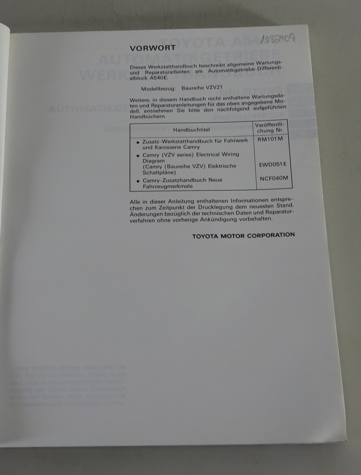 Originales Werkstatthandbuch von Toyota