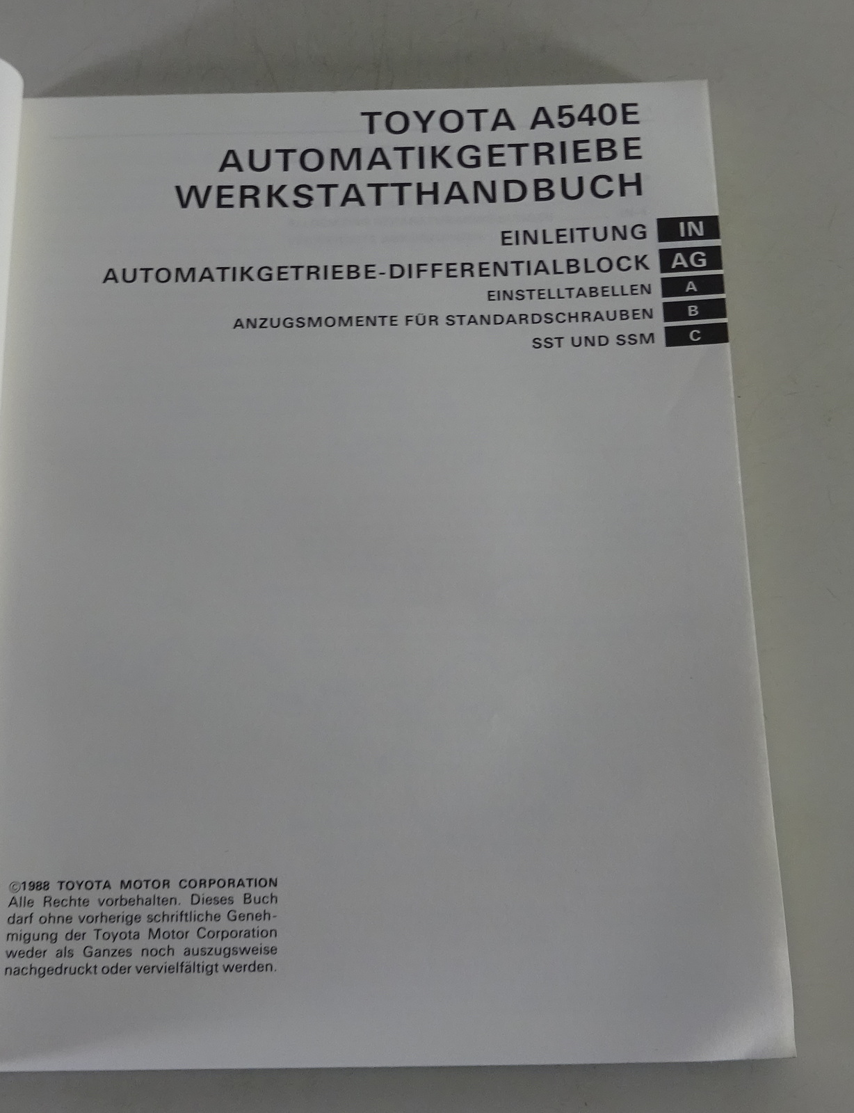 Produktinformationen "Werkstatthandbuch Toyota Automatikgetriebe-Differentialblock A540E Stand 02/1988"