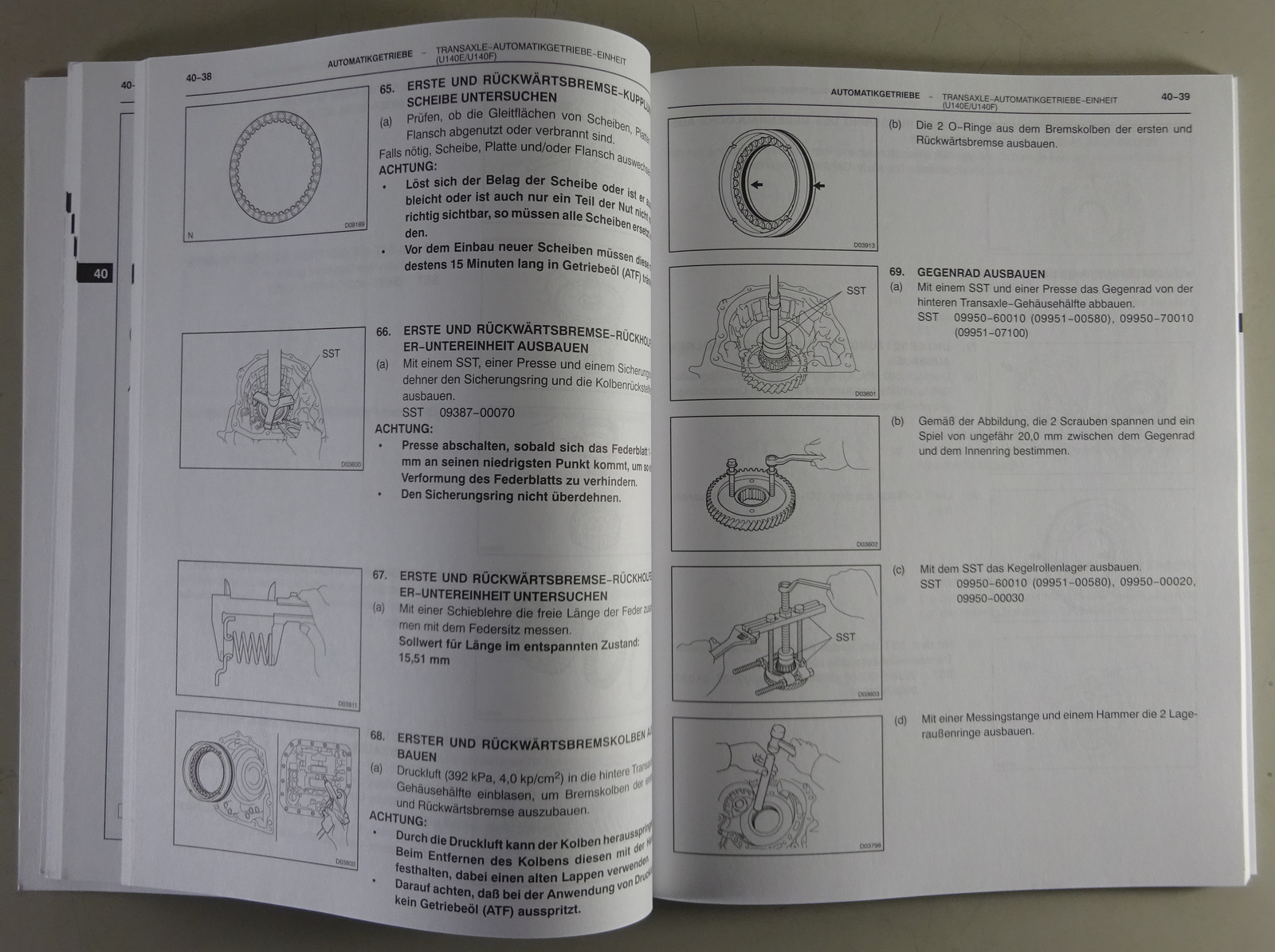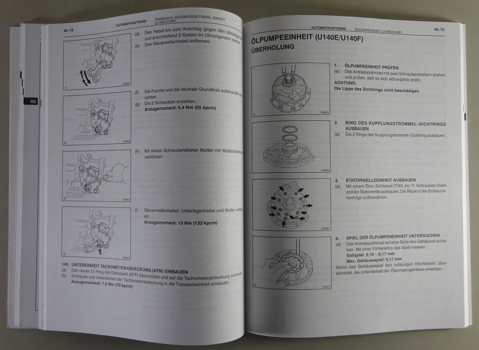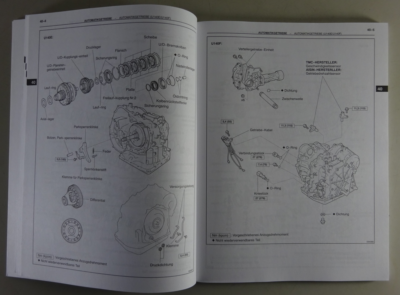 Werkstatthandbuch Toyota Automatikgetriebedifferentialbock U140E / U140F 11/2002