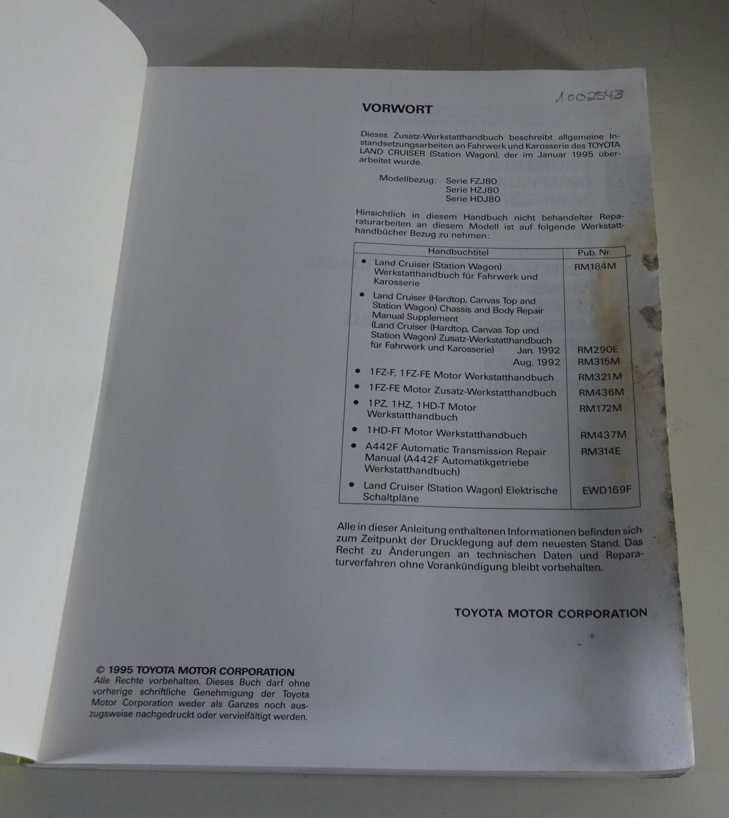 Produktinformationen "Werkstatthandbuch Toyota Land Cruiser Station Wagon Fahrwerk Getriebe, 01/1995"