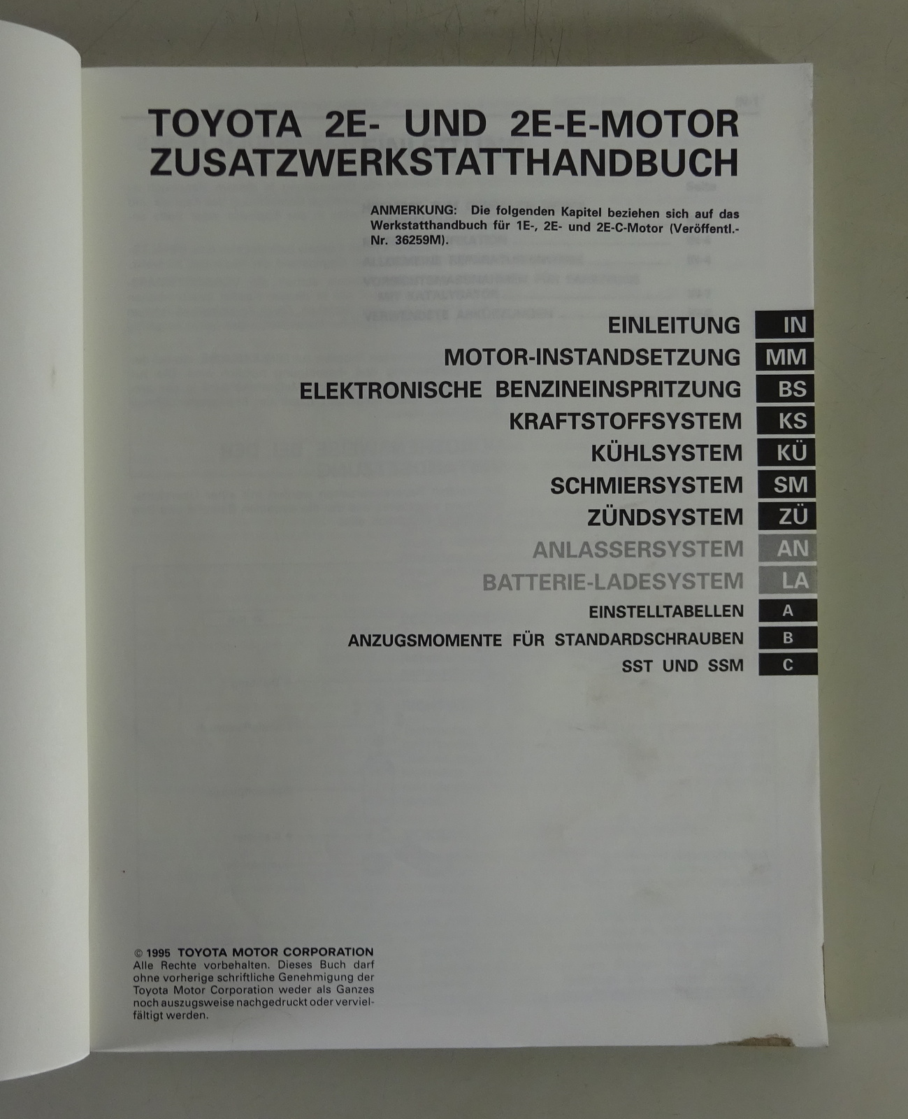 Originaler Nachtrag für Werkstatthandbuch von Toyota Toyota Motor 2E... mehr