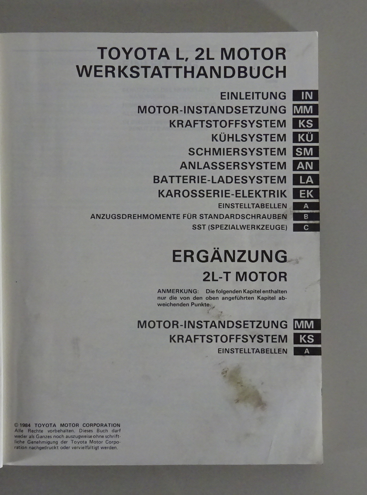 Werkstatthandbuch / Reparaturhandbuch original Toyota Toyota Motor L / 2L /... mehr